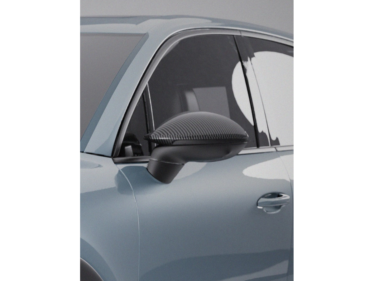 视线高度,高品质外露碳纤维材质的外后视镜格外引人注目。左右两侧的后视镜壳与后视镜盖完美匹配,并通过附加的小翼引导侧面的气流,进一步提升了空气动力学效率。