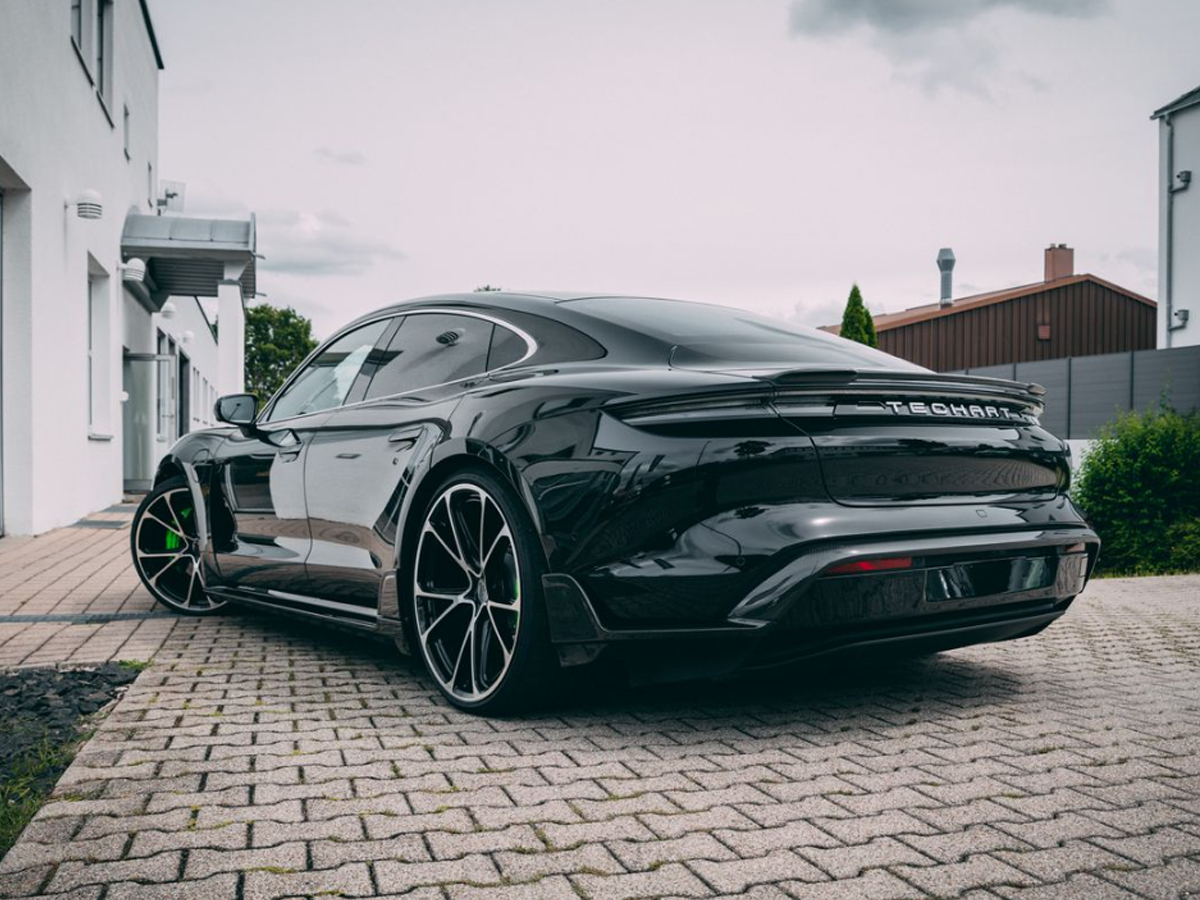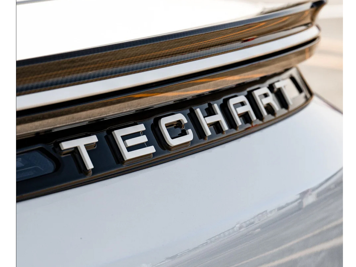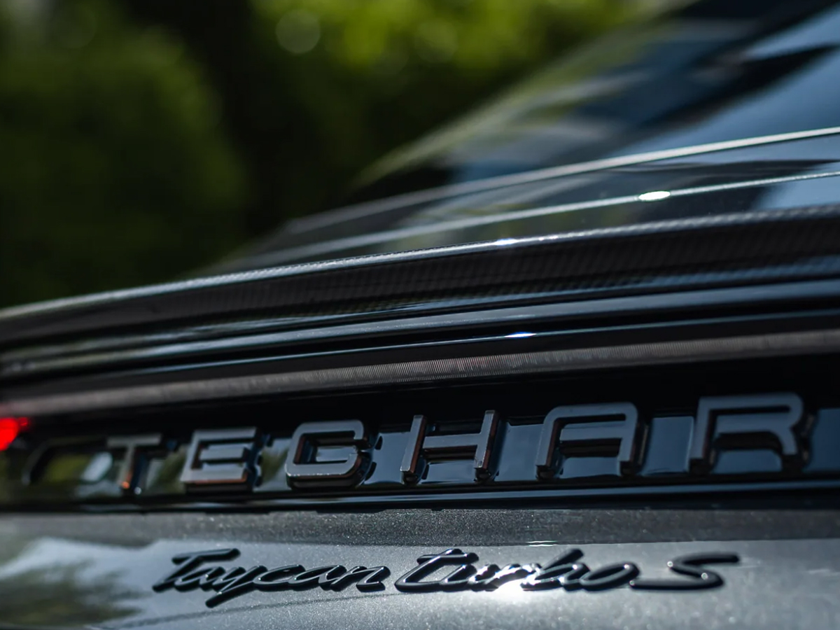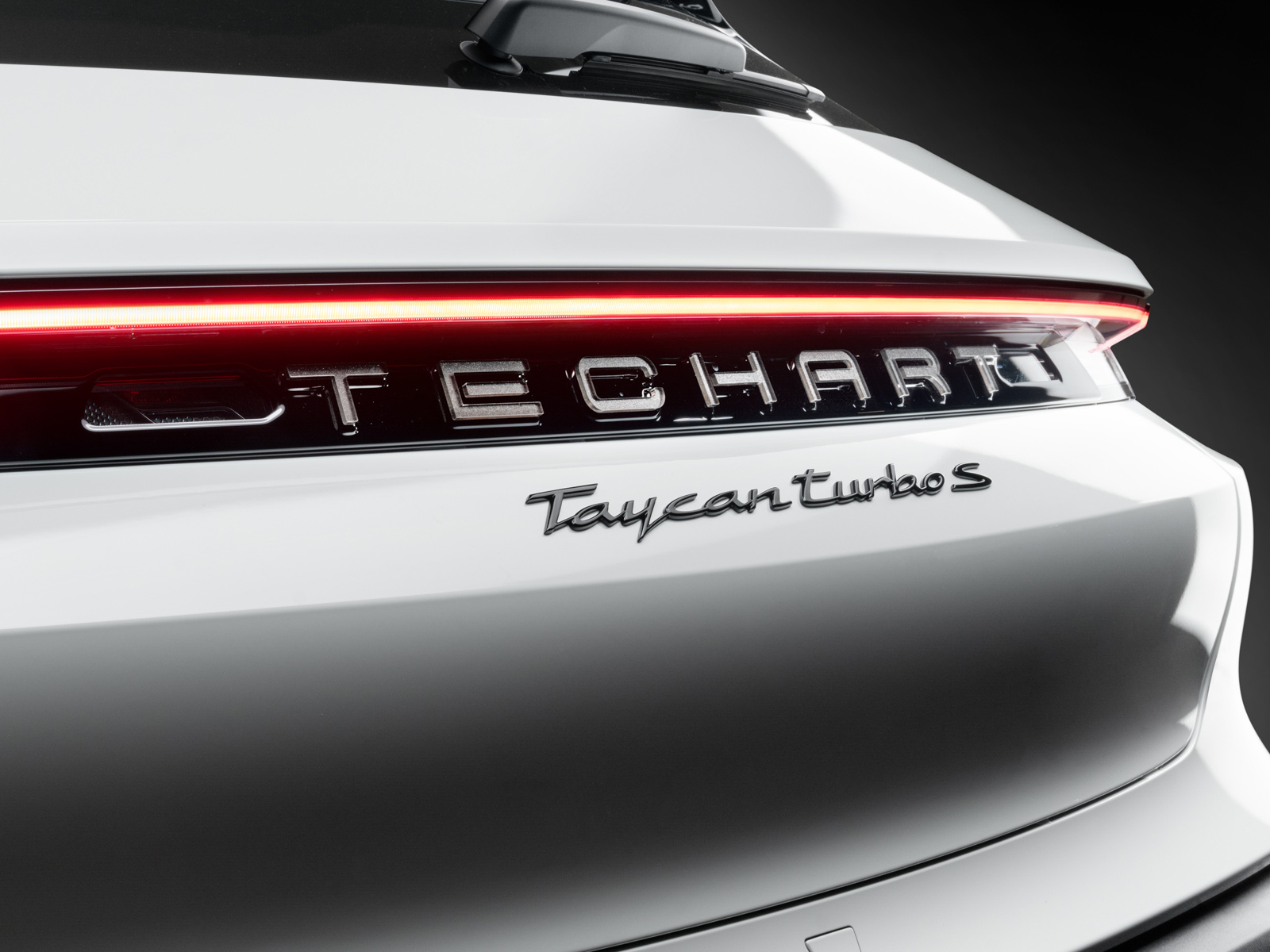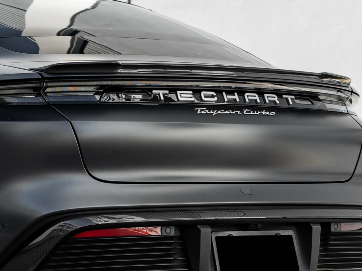 TECHART 后部的字母采用高品质、三维形状的丙烯酸玻璃字母,很明显这不再是 Taycan 的基础型号。