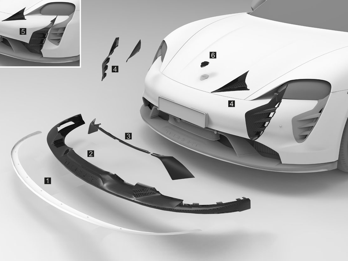 请注意:对于非 Turbo GT 车型,安装时需要额外的保时捷零件 - 单独提供。