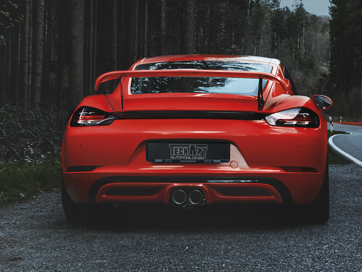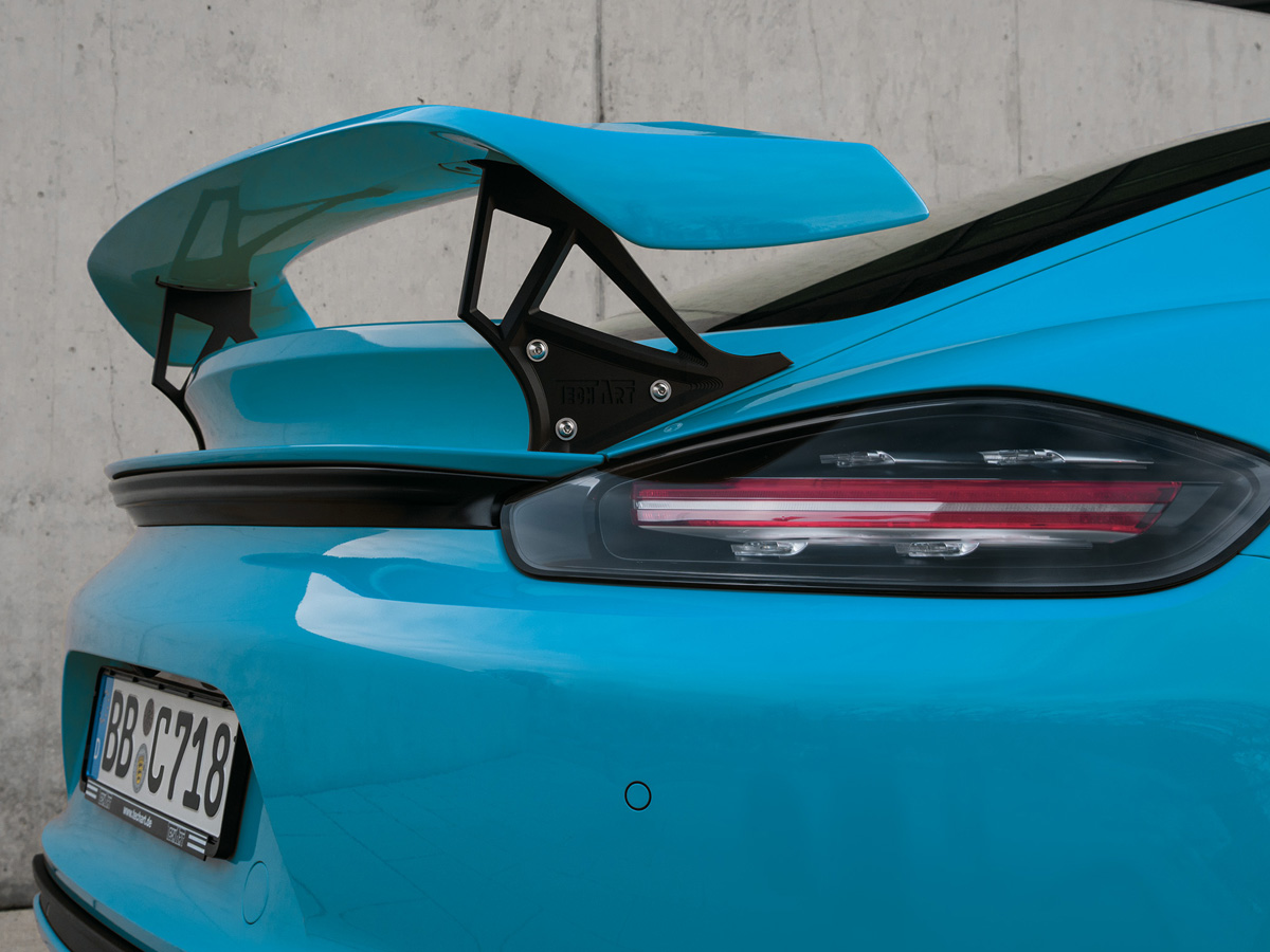 TECHART 后扰流板 II 的特点是安装在行李箱盖上的碳纤维翼型。