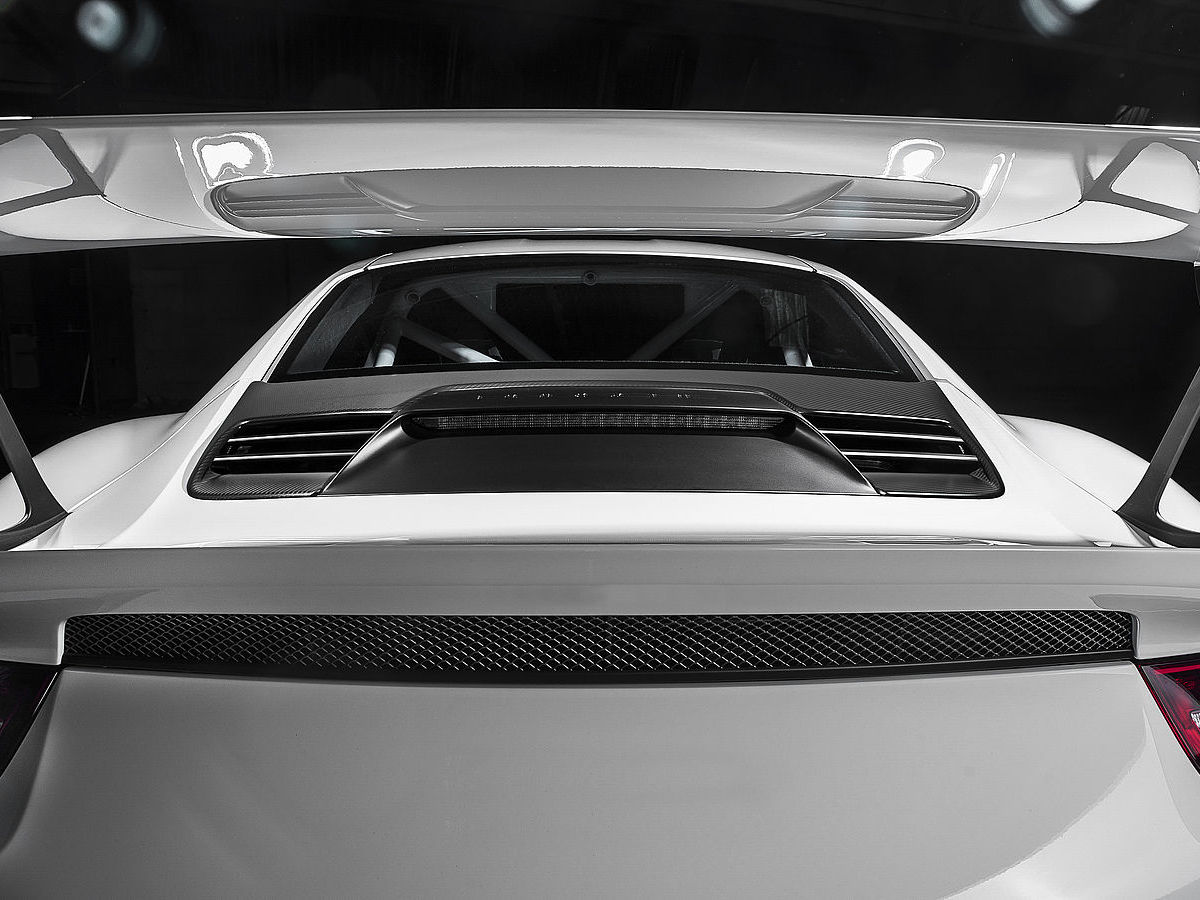 它的赛车风格无可挑剔,后扰流板 II 的翼形轮廓位于黑色阳极氧化铝立柱上,有三种碳纤维饰面可供选择。