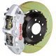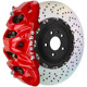 该制动系统源自 Racing 部件,由通风、整体或复合盘(可选钻孔或开槽)、4、6 和 8 活塞铝制卡钳、一整套高性能刹车片、金属编织管和高品质小零件组成。