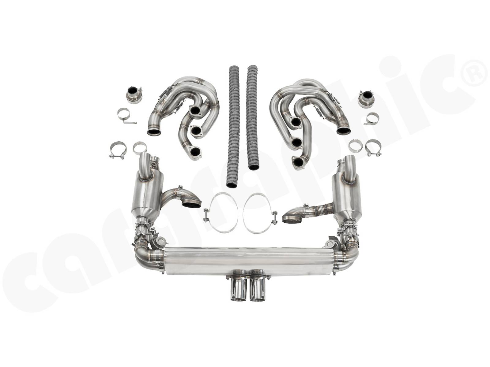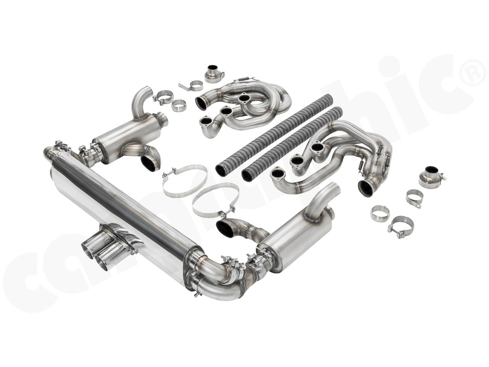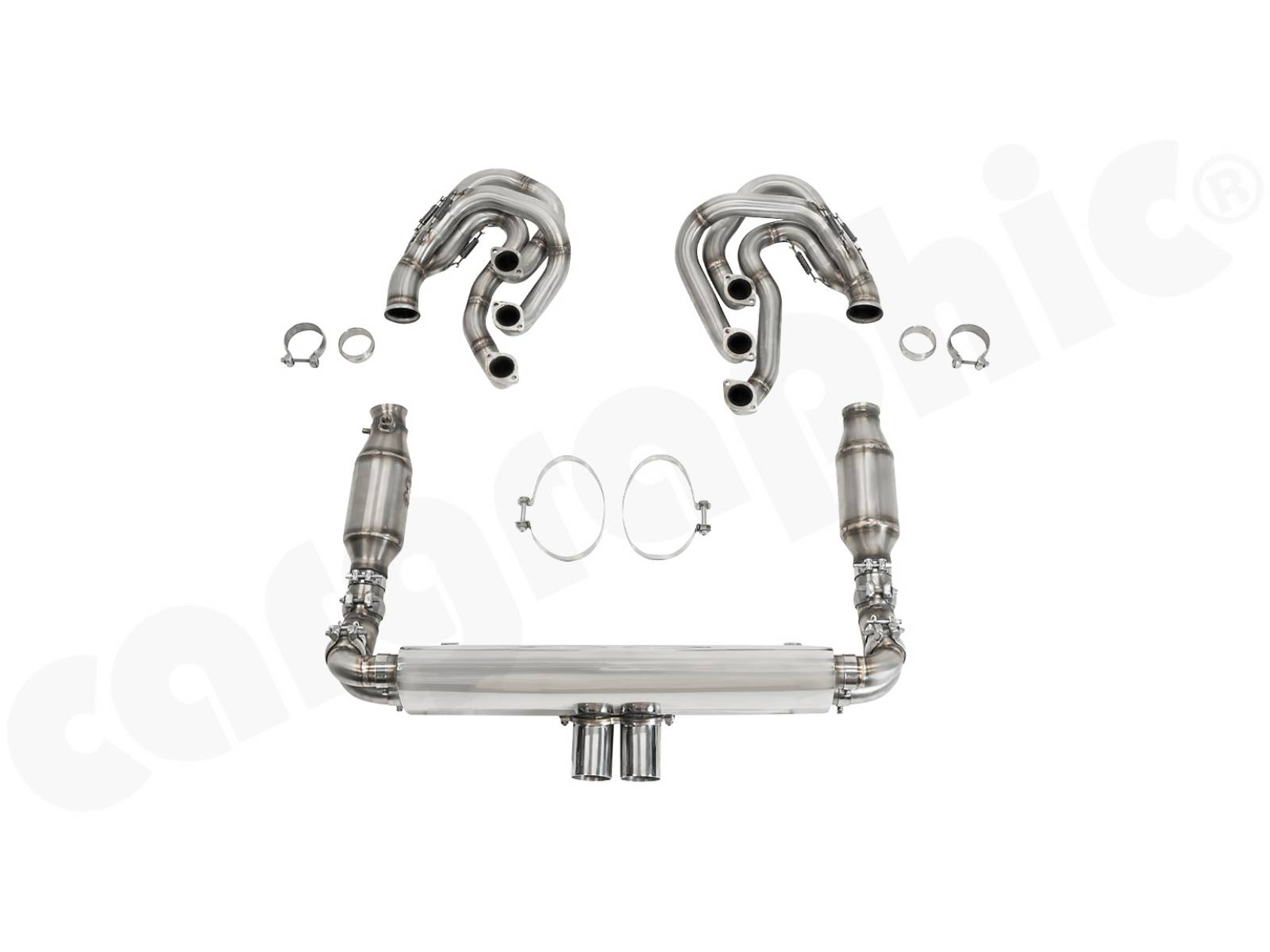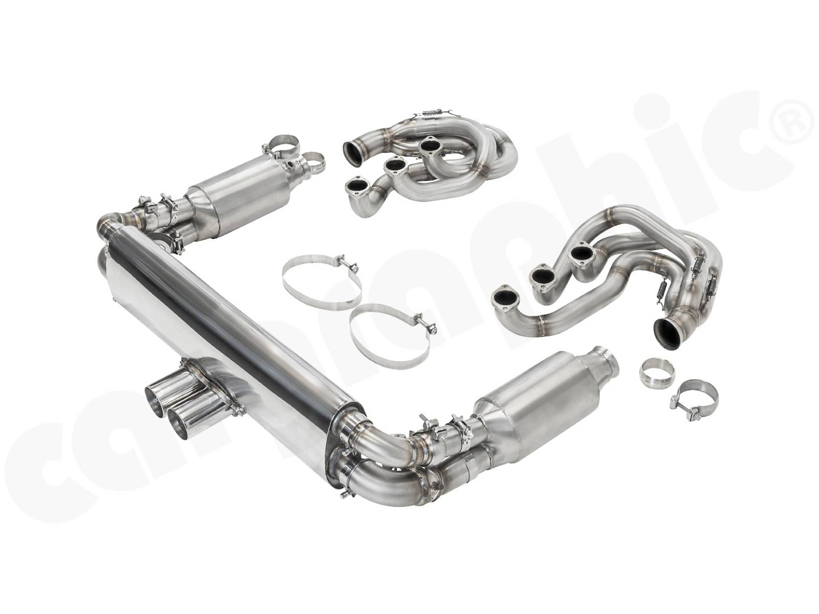 CARGRAPHIC GT Sport 排气系统,配备 ID42 GT 歧管套件,带/不带2x200cpsi 催化转化器,带加热功能、排气阀和 4>2 流后消音器,带 2x70mm 中央出口,GT3 外观。