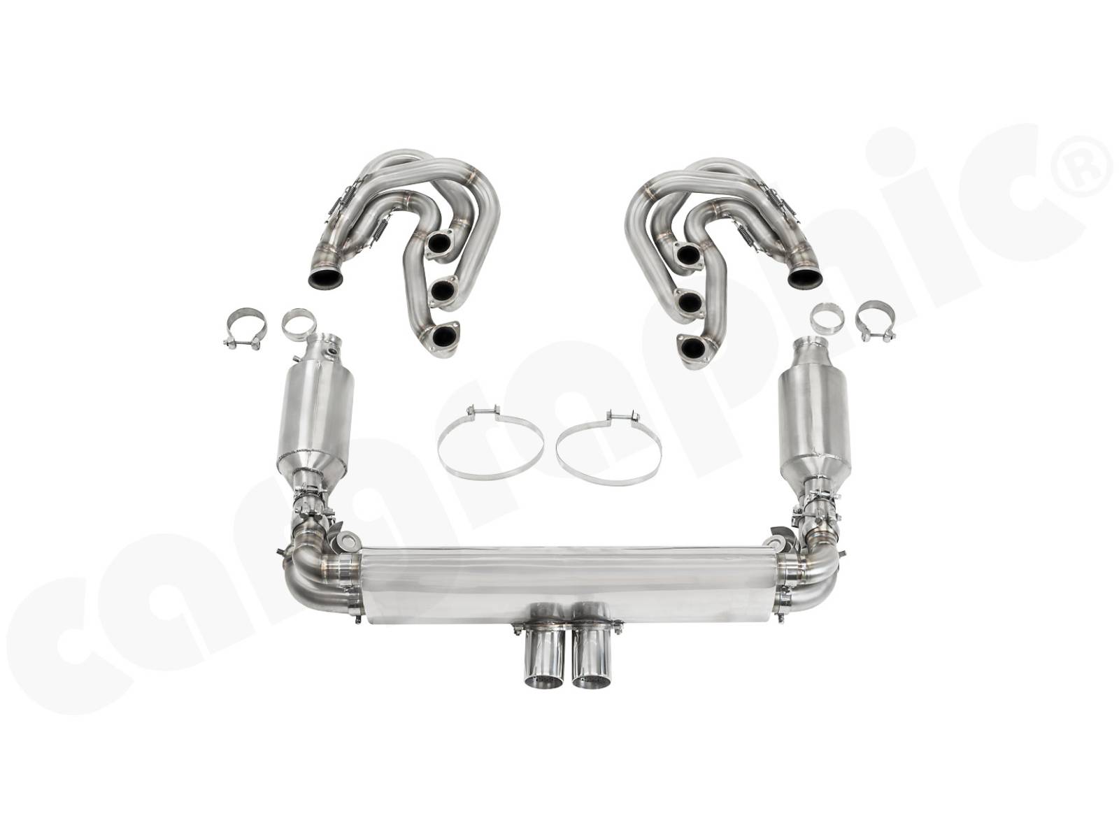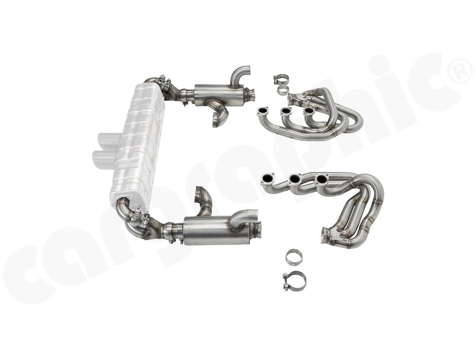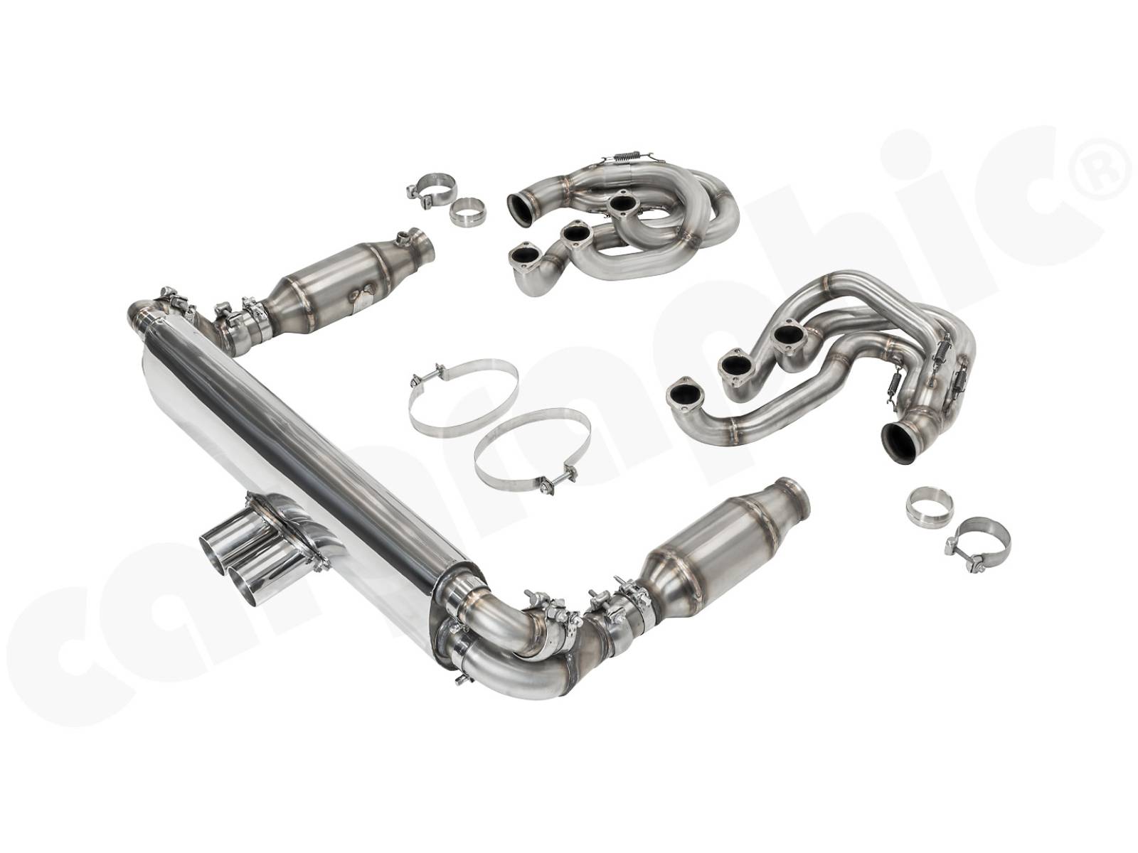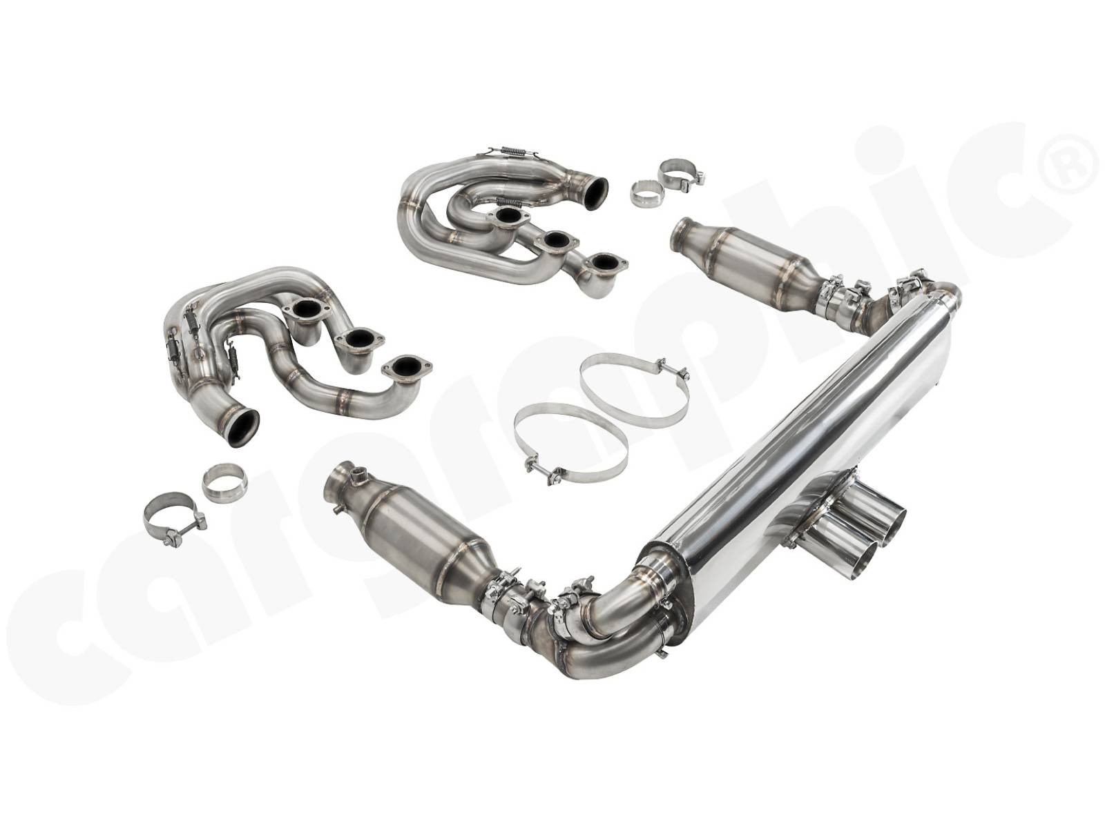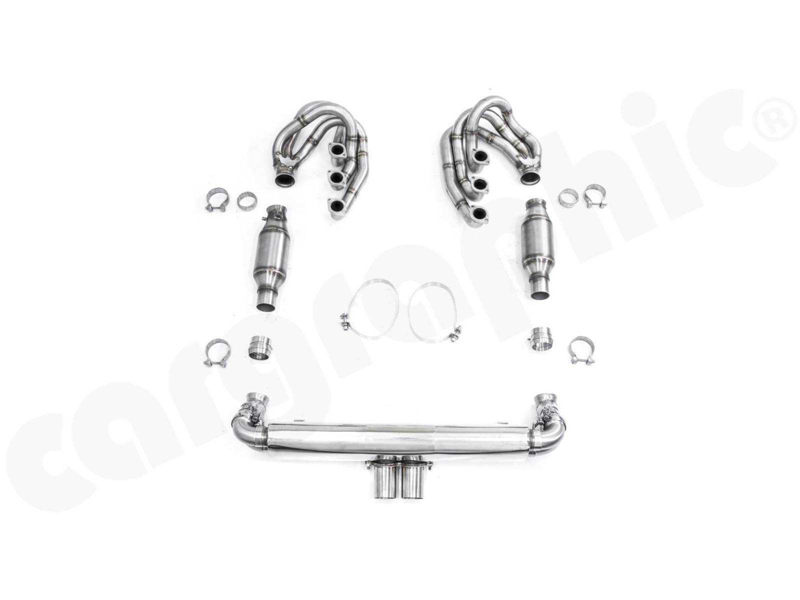 CARGRAPHIC GT Sport 排气系统,配备 ID42 GT 歧管套件,带/不带2x200cpsi 催化转化器,带加热功能、排气阀和 4>2 流后消音器,带 2x70mm 中央出口,GT3 外观。
