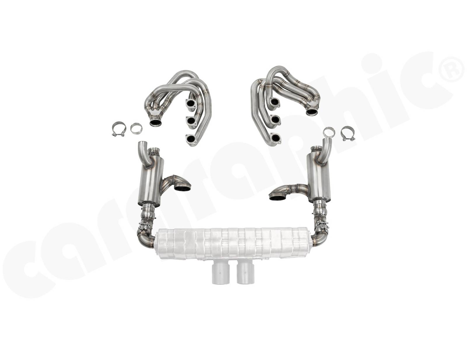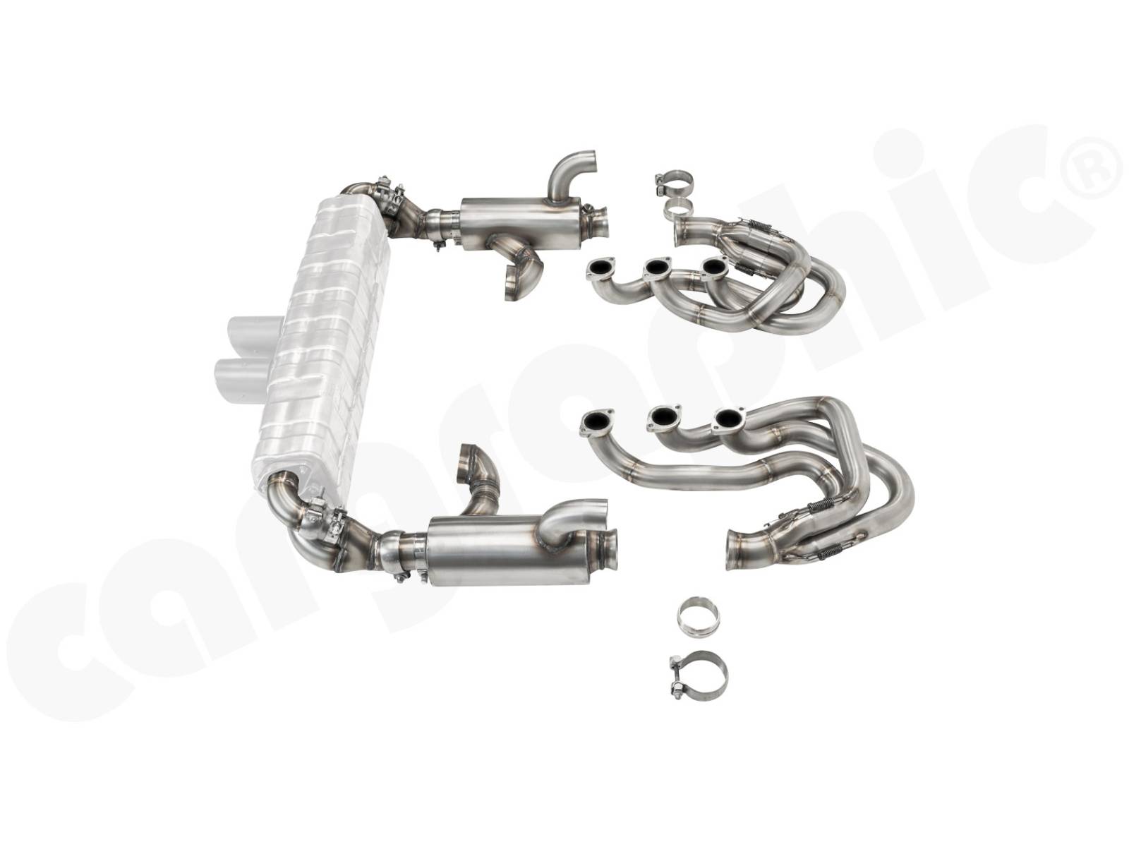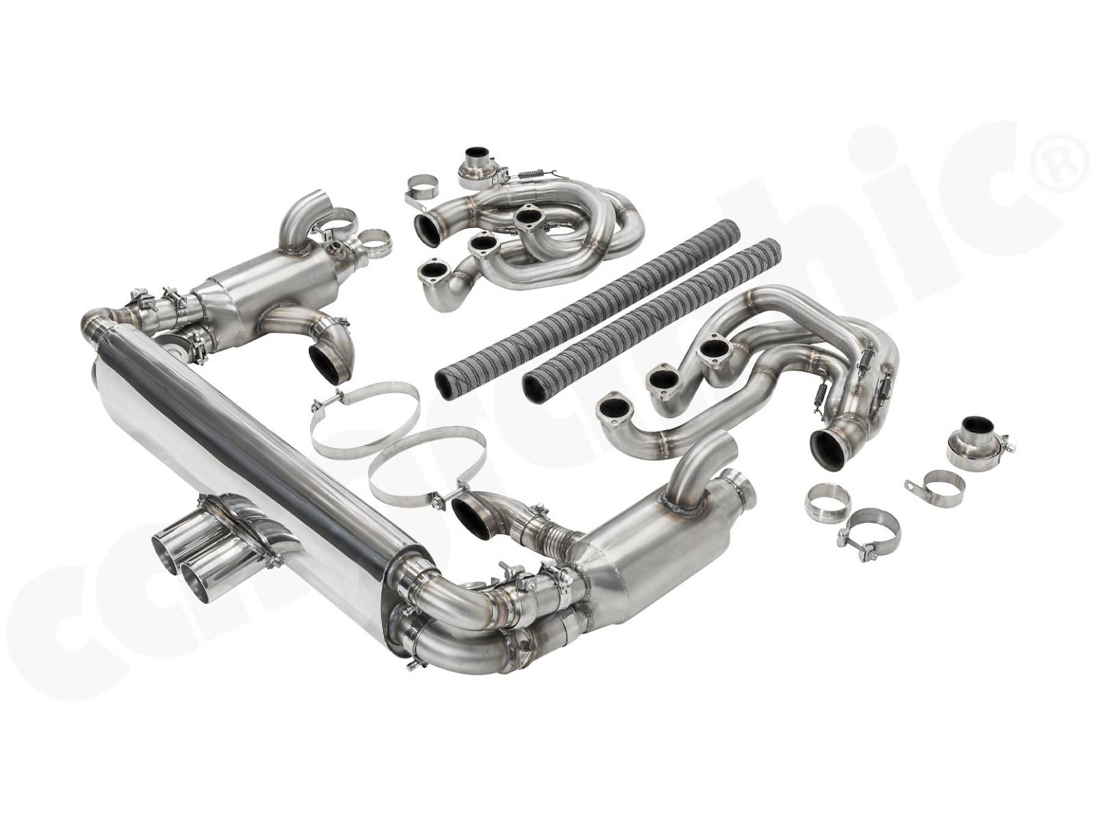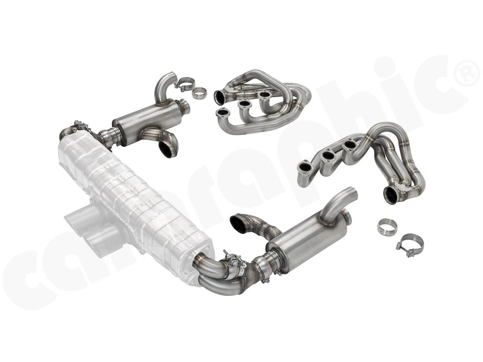 CARGRAPHIC GT Sport 排气系统,配备 ID42 GT 歧管套件,带/不带2x200cpsi 催化转化器,带加热功能、排气阀和 4>2 流后消音器,带 2x70mm 中央出口,GT3 外观。