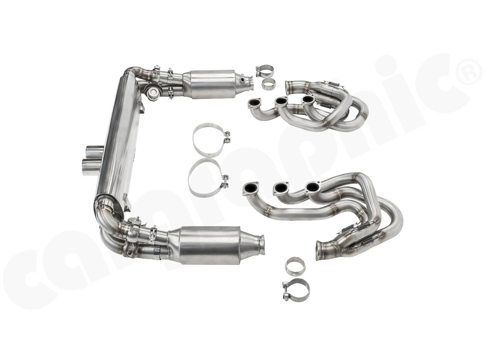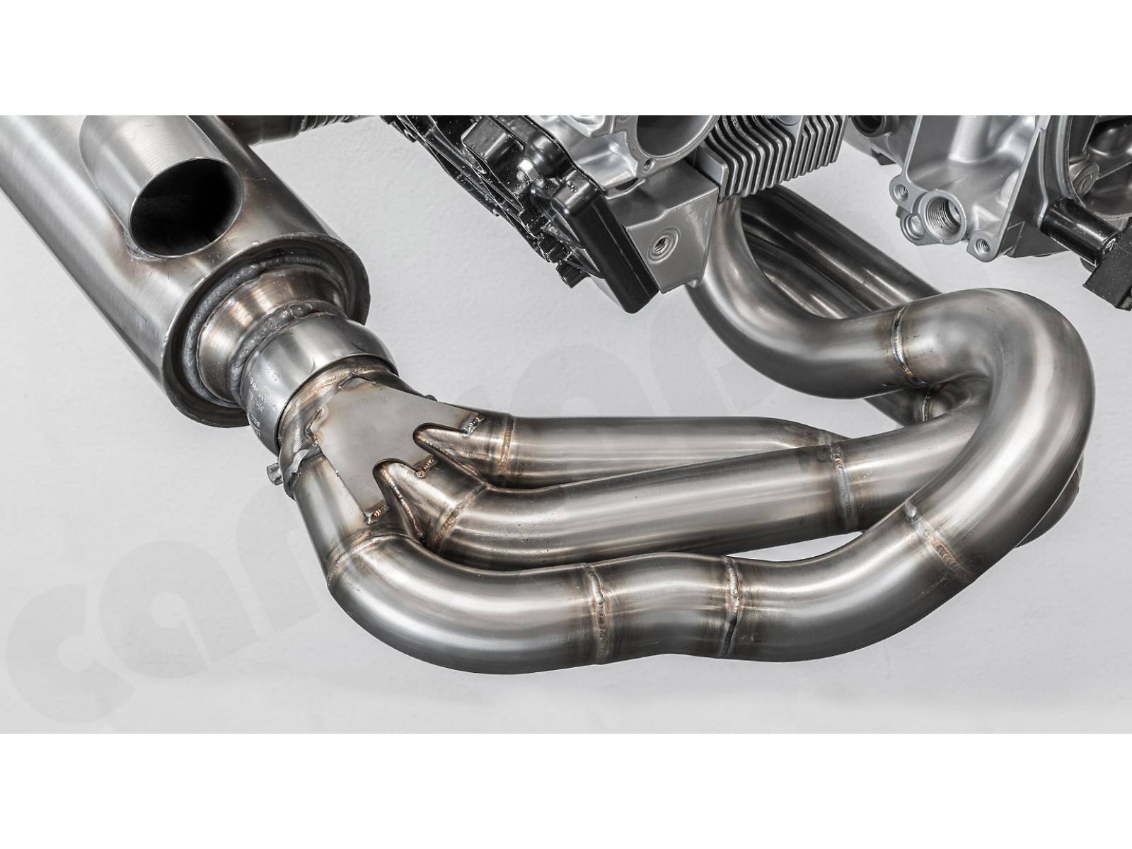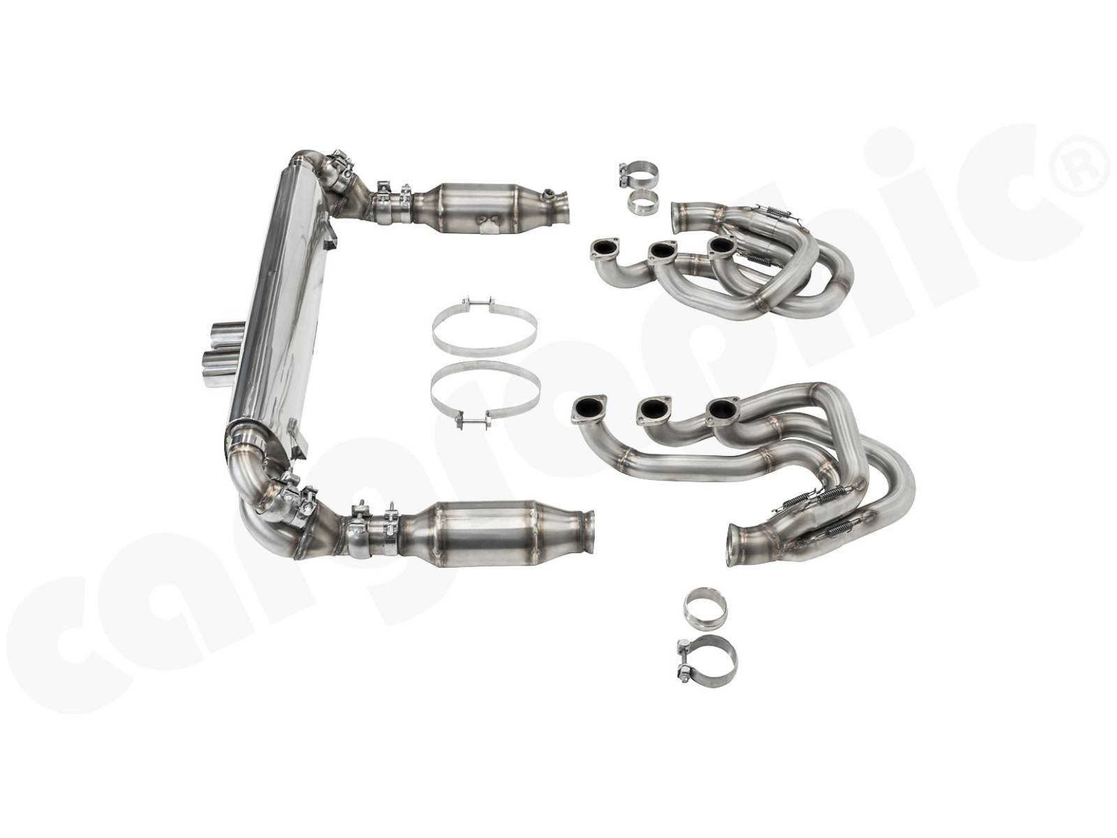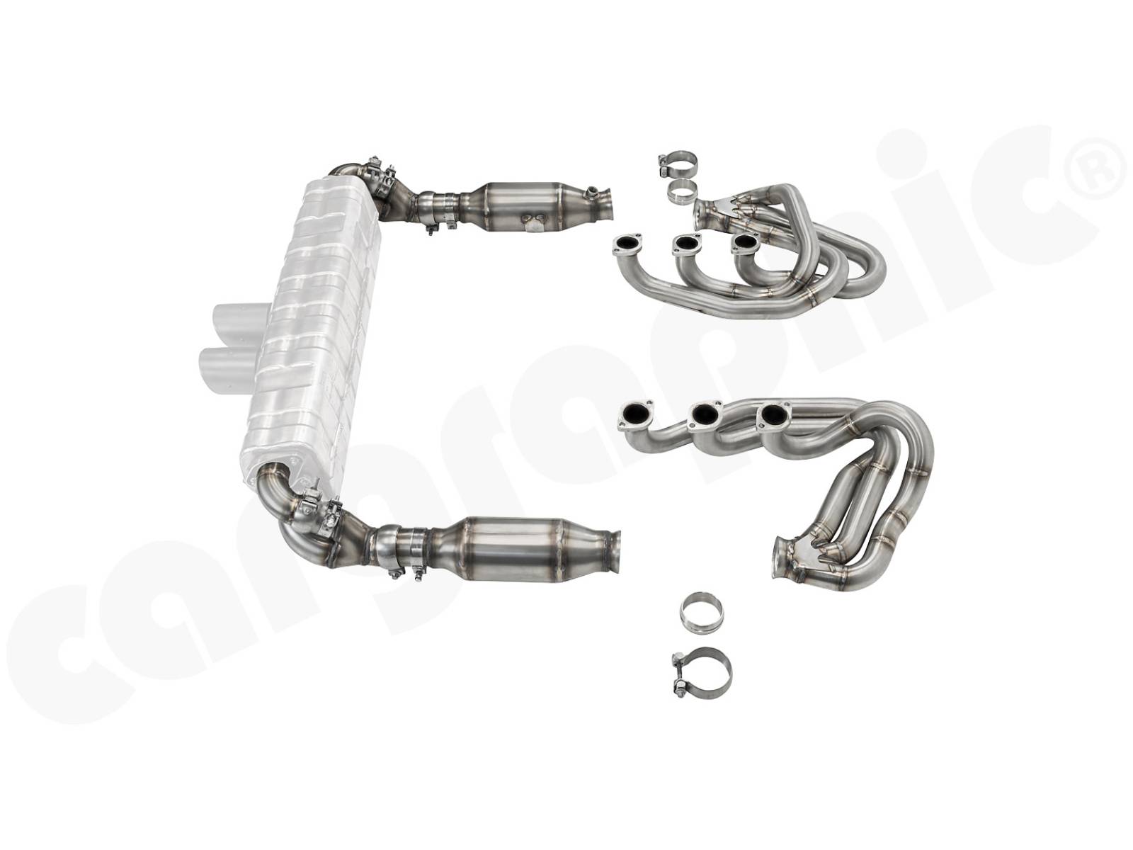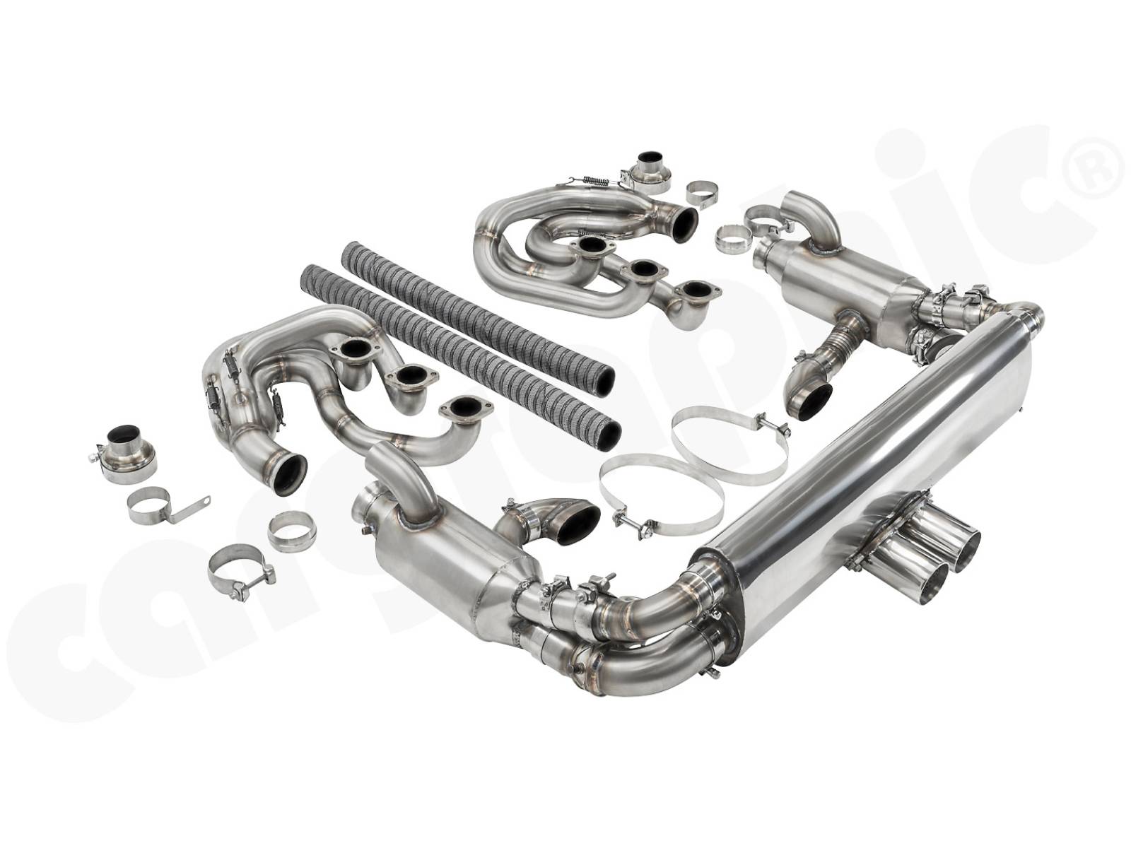CARGRAPHIC GT Sport 排气系统,配备 ID42 GT 歧管套件,带/不带2x200cpsi 催化转化器,带加热功能、排气阀和 4>2 流后消音器,带 2x70mm 中央出口,GT3 外观。