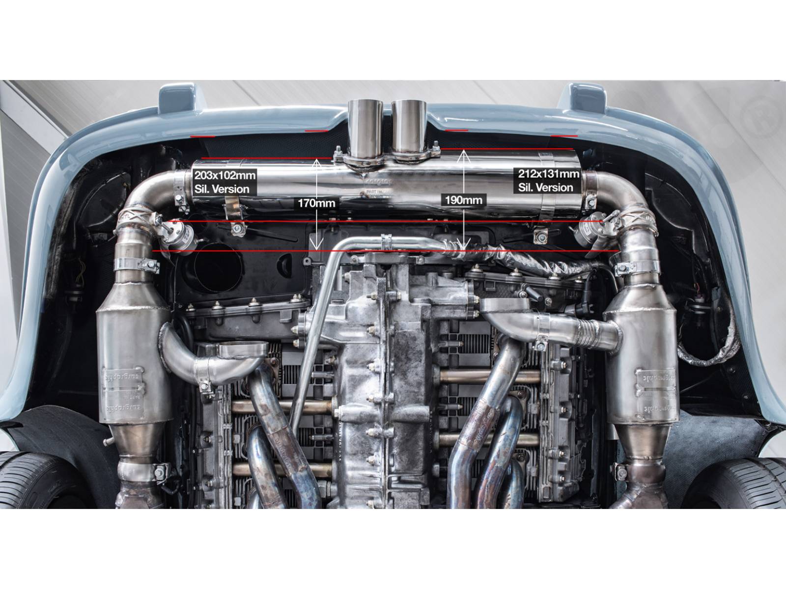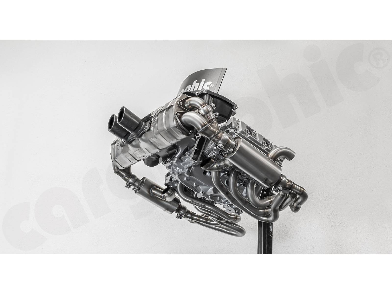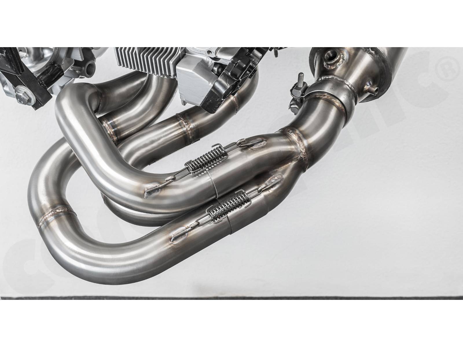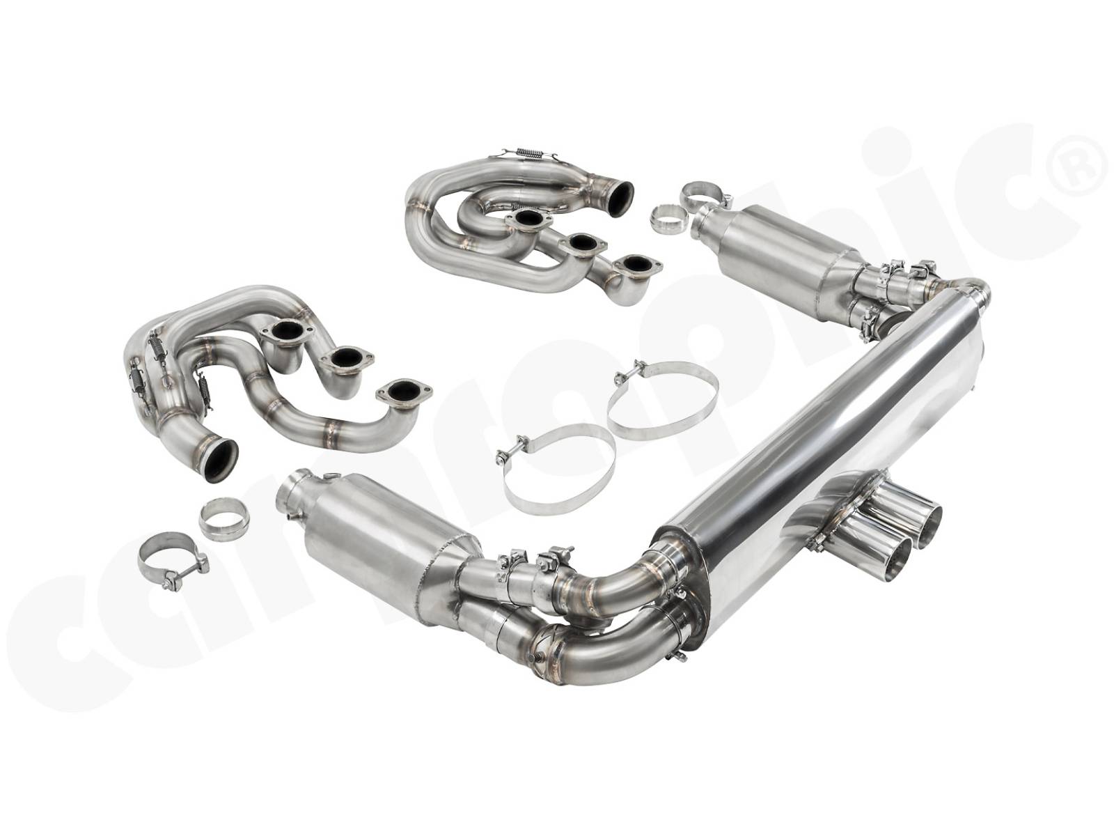 CARGRAPHIC GT Sport 排气系统,配备 ID42 GT 歧管套件,带/不带2x200cpsi 催化转化器,带加热功能、排气阀和 4>2 流后消音器,带 2x70mm 中央出口,GT3 外观。