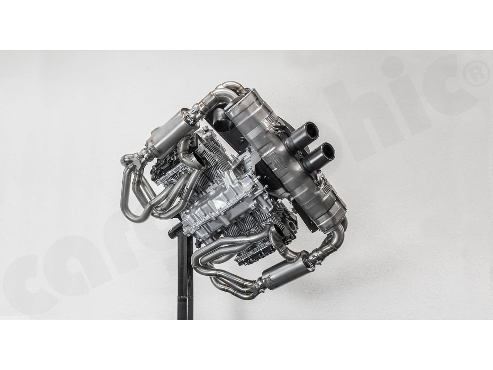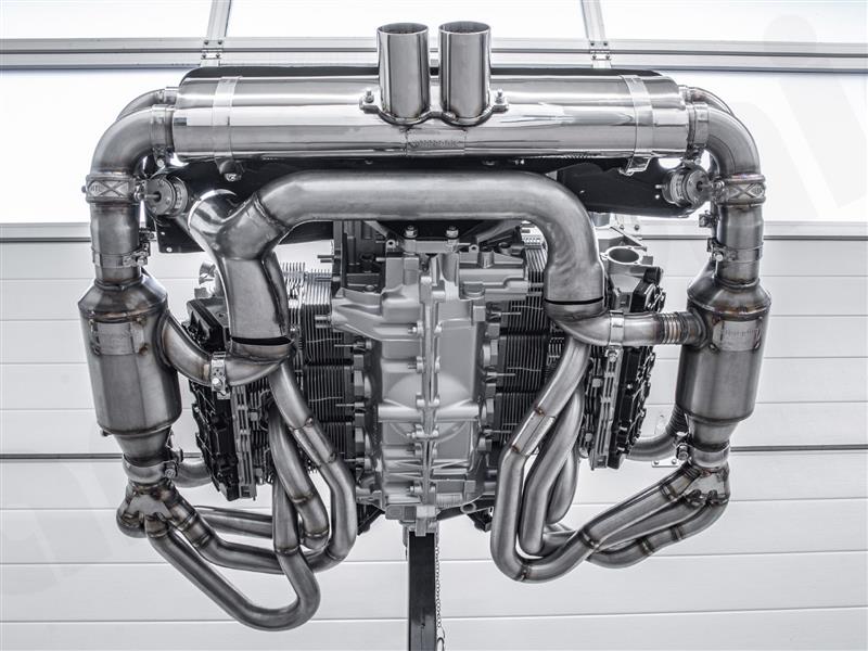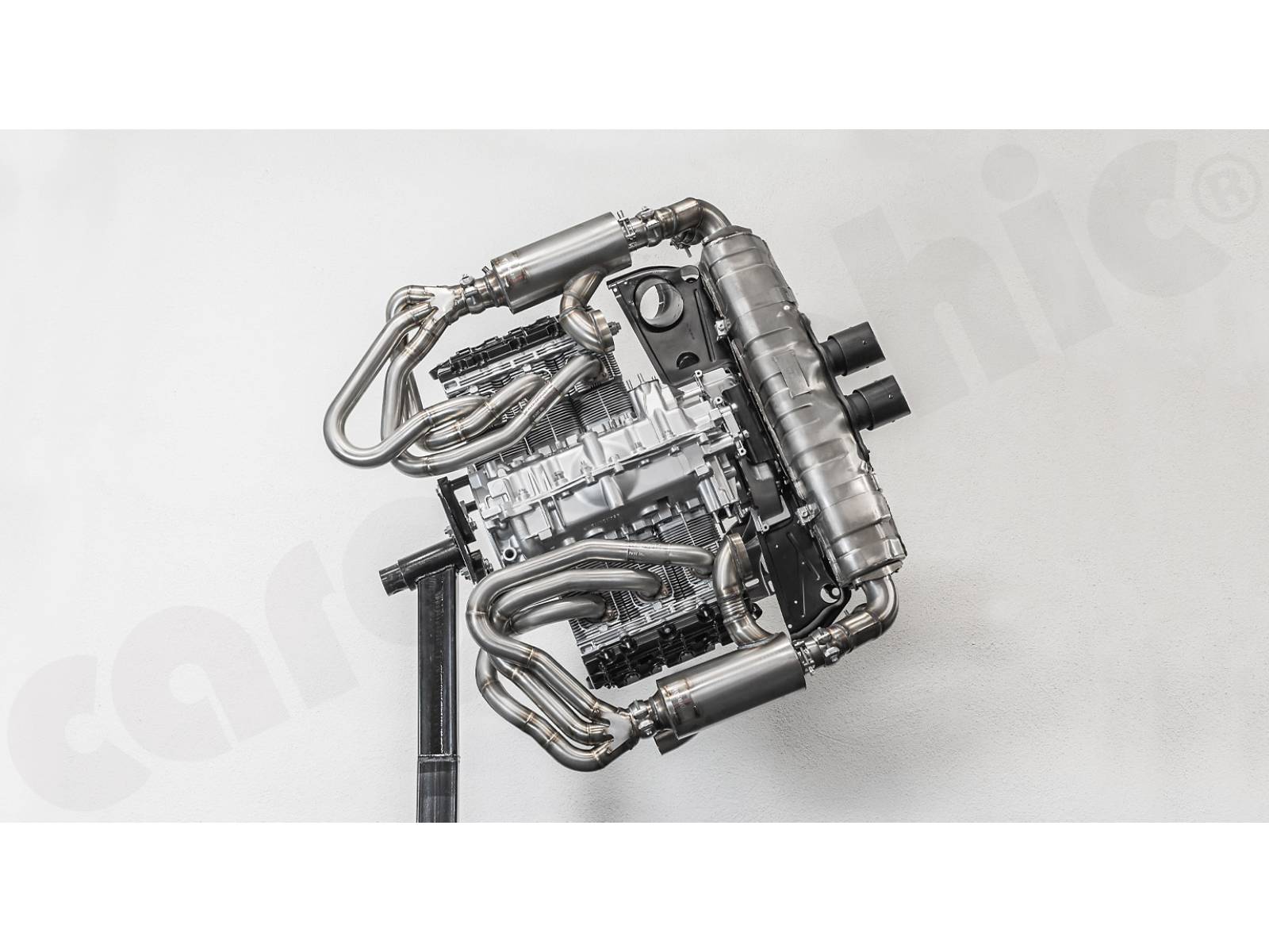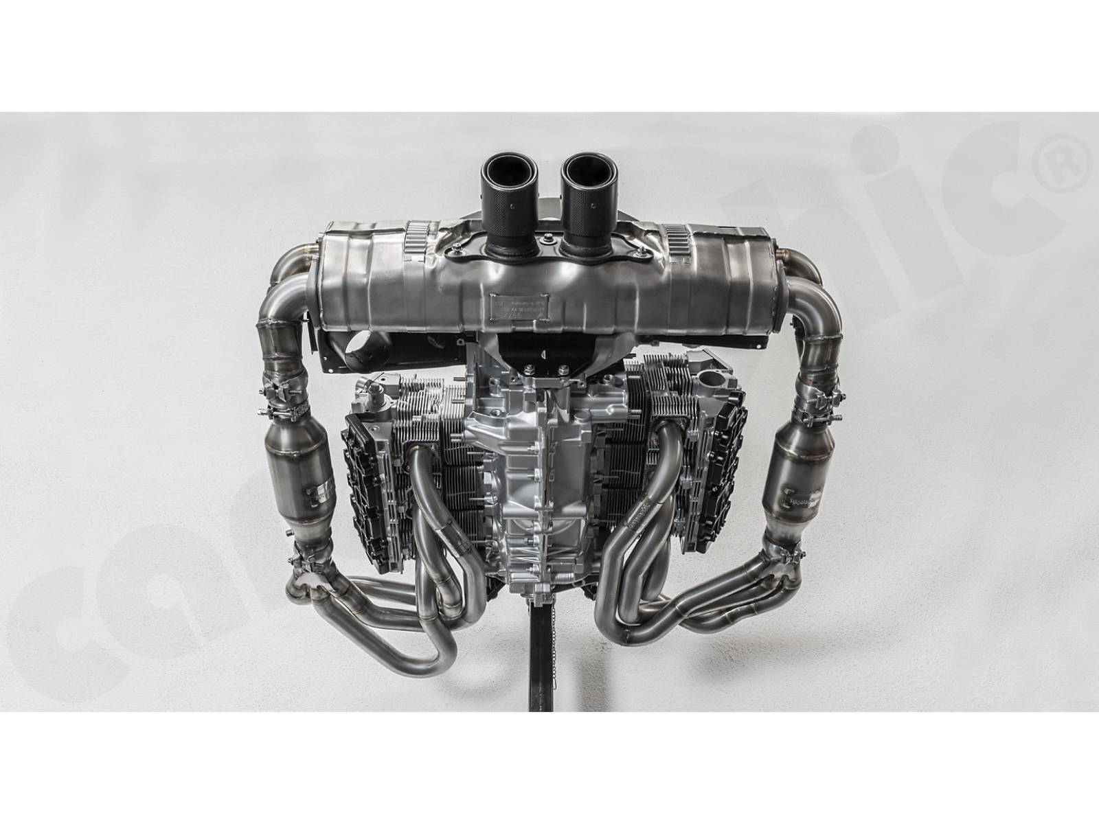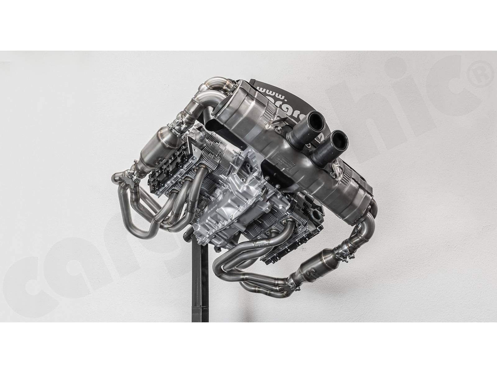 CARGRAPHIC GT Sport 排气系统,配备 ID42 GT 歧管套件,带/不带2x200cpsi 催化转化器,带加热功能、排气阀和 4>2 流后消音器,带 2x70mm 中央出口,GT3 外观。