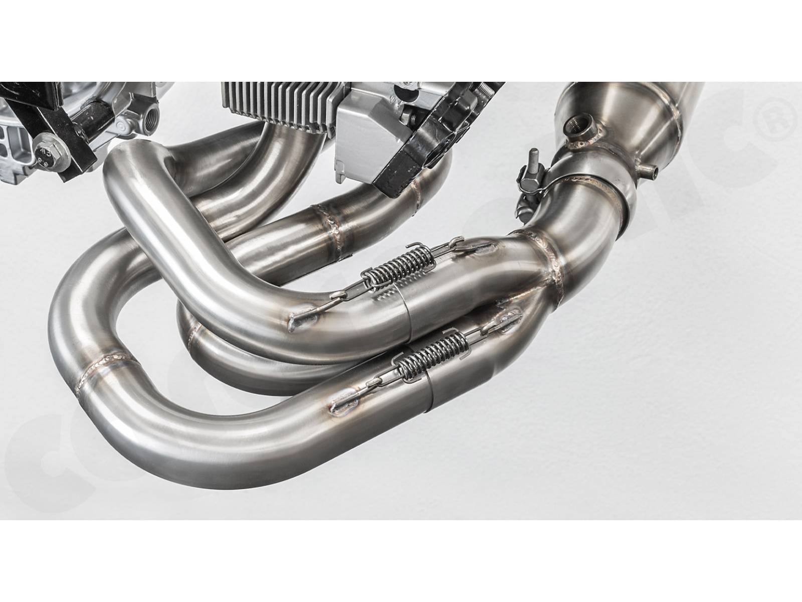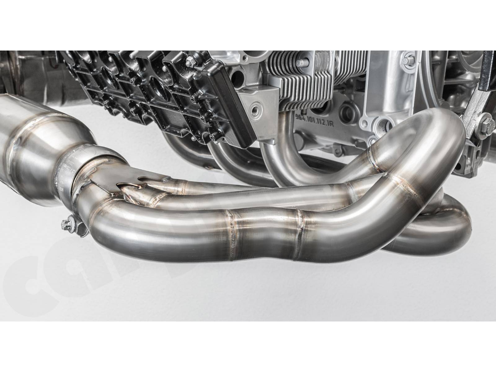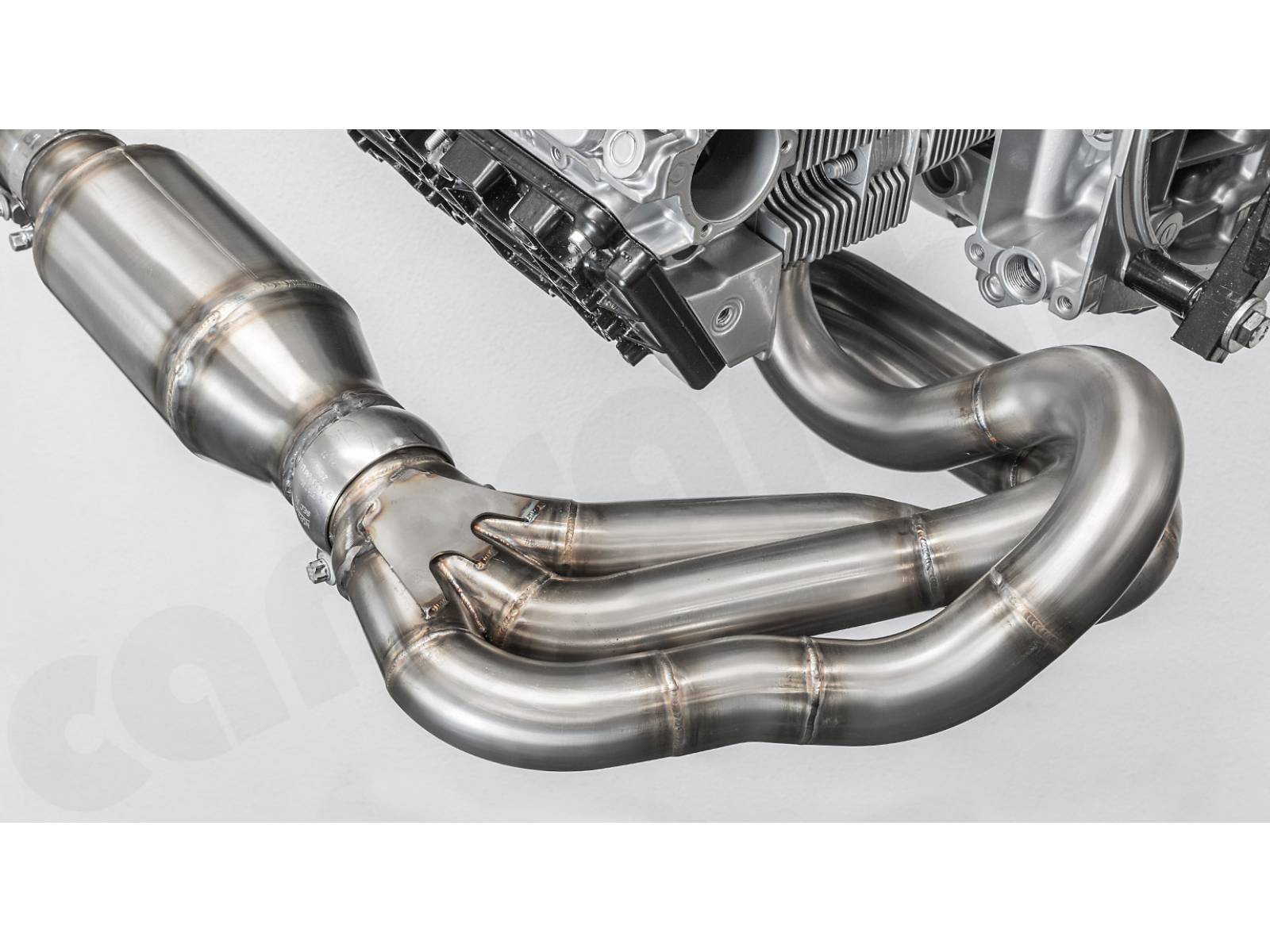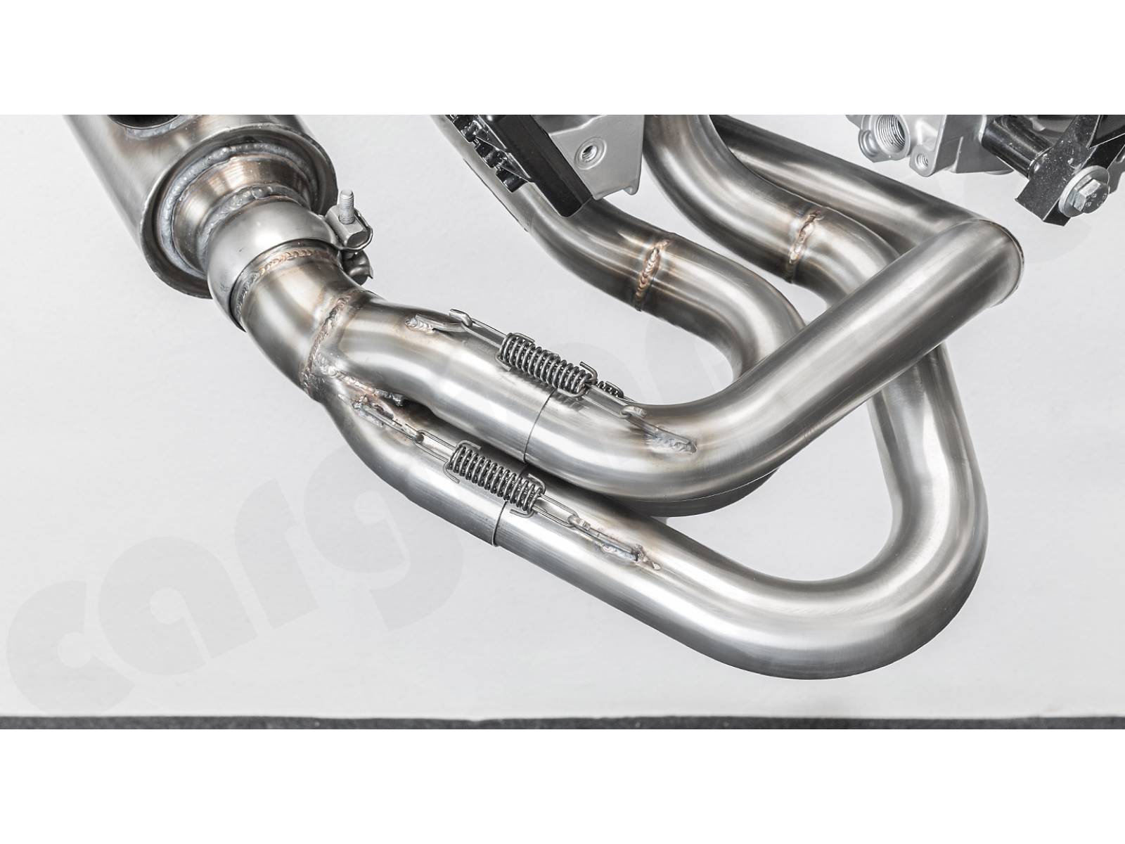 CARGRAPHIC GT Sport 排气系统,配备 ID42 GT 歧管套件,带/不带2x200cpsi 催化转化器,带加热功能,不带阀门,可与 OEM GT3 后消音器配合使用。