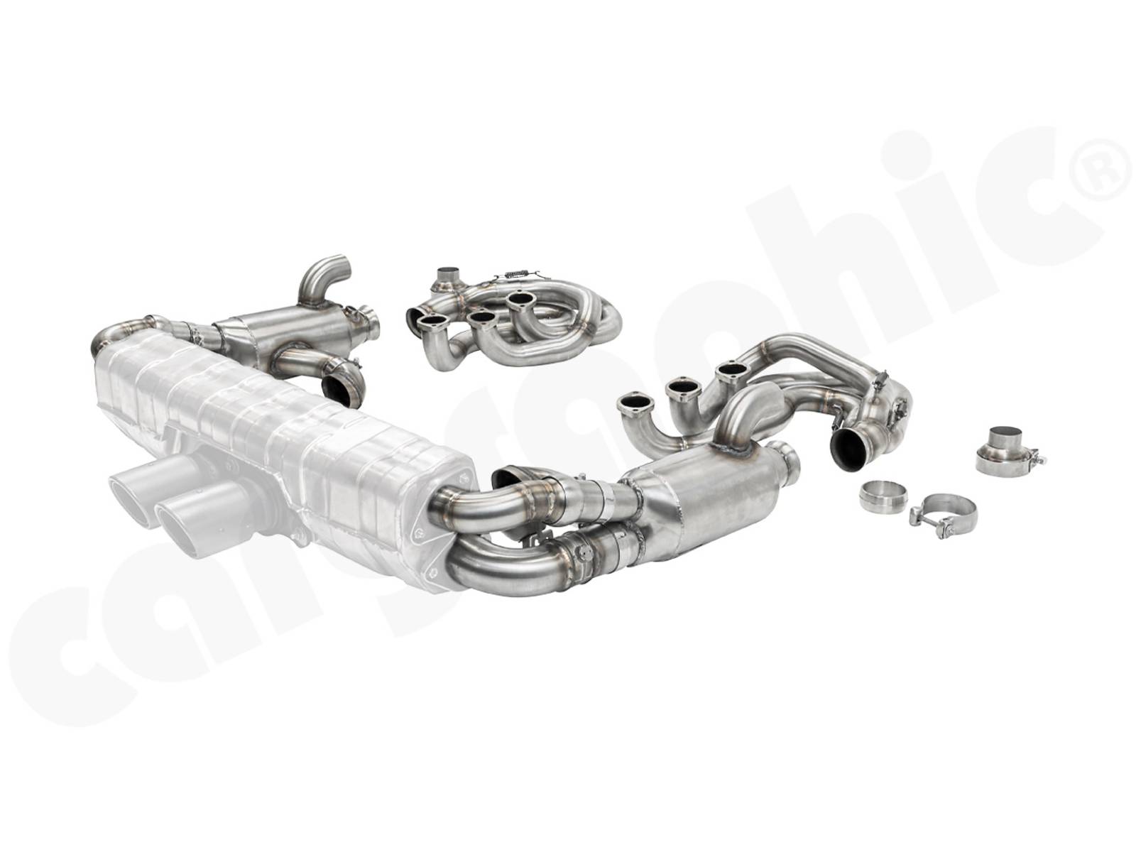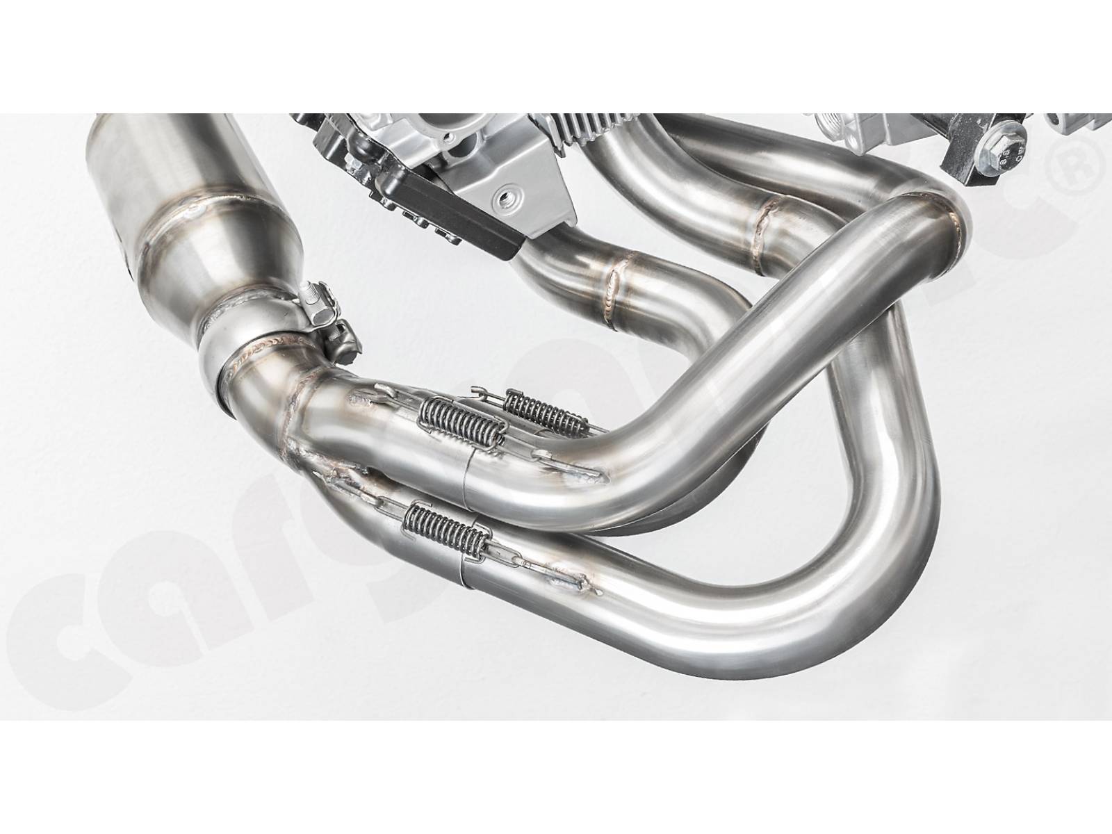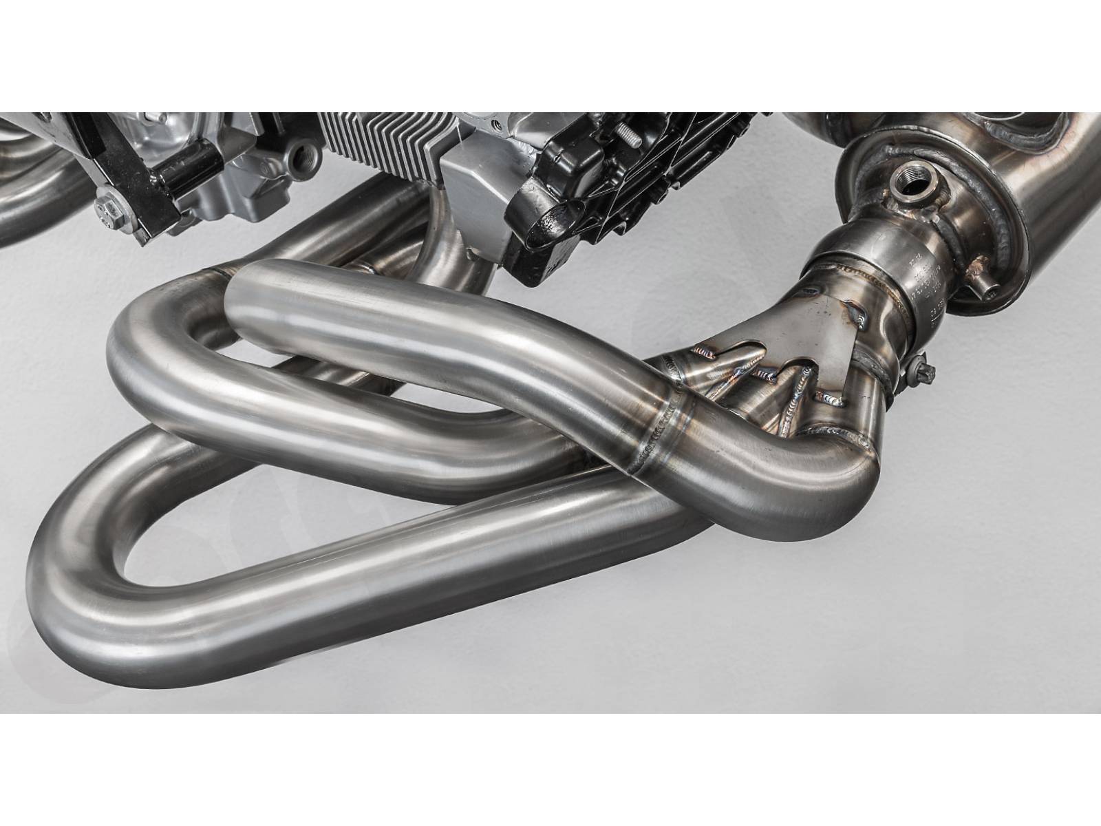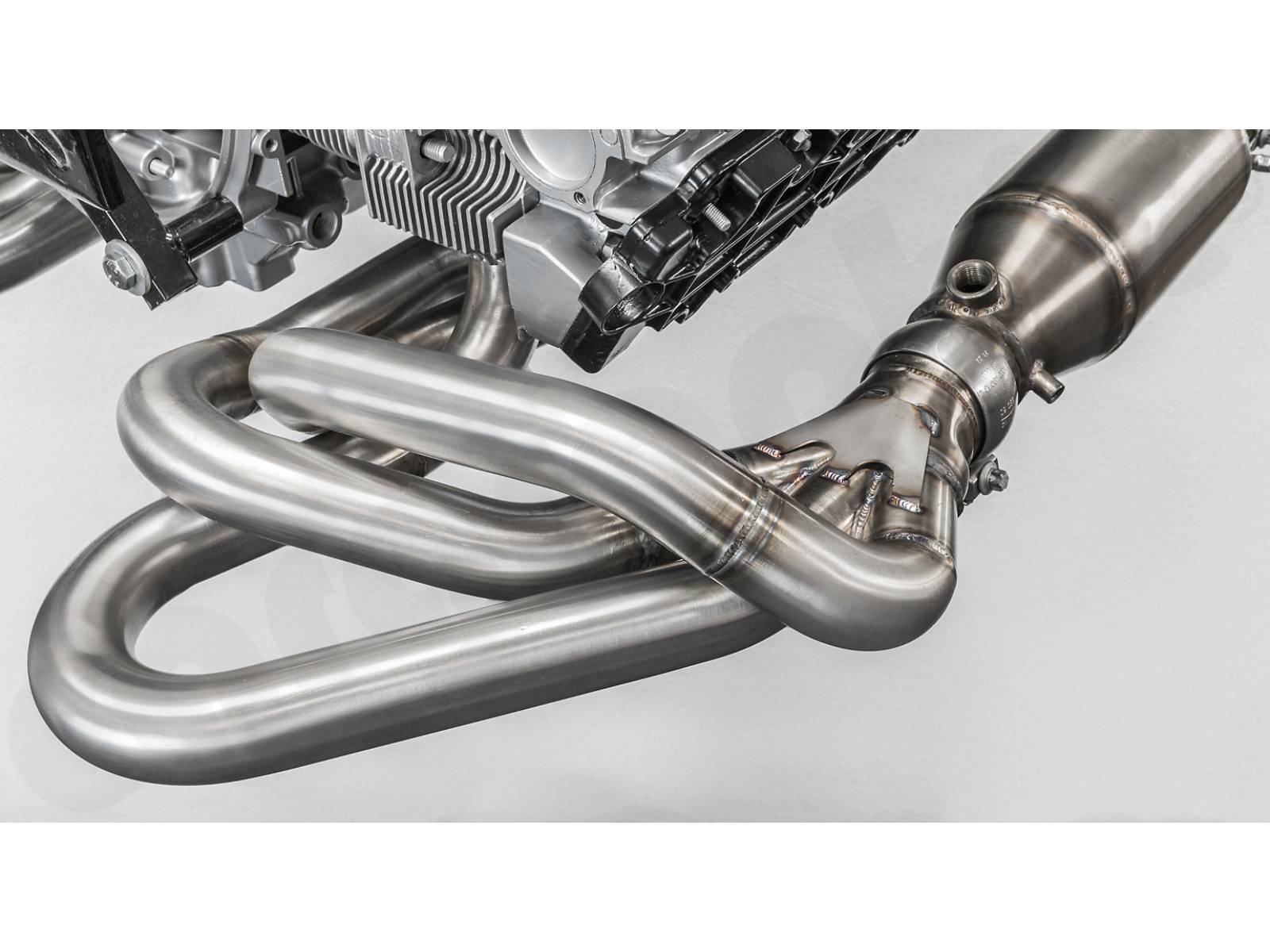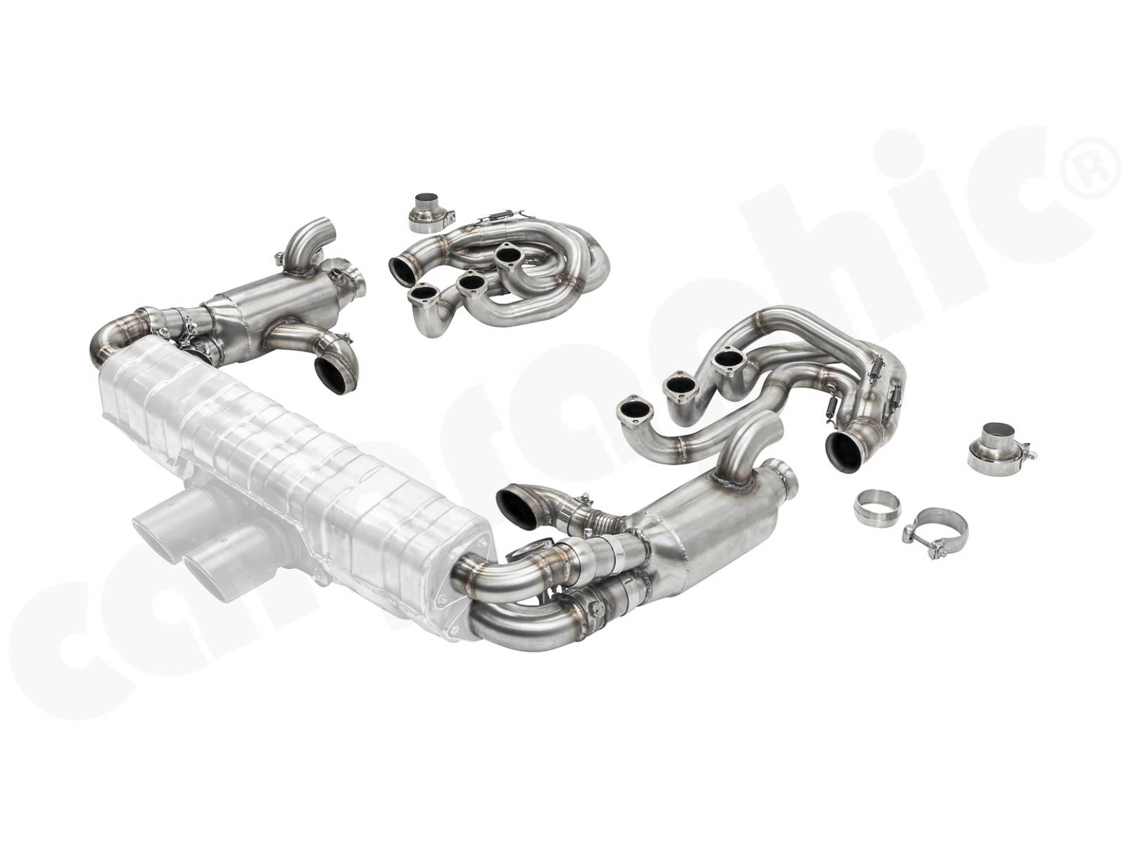 CARGRAPHIC GT Sport 排气系统,配备 ID42 GT 歧管套件,带/不带2x200cpsi 催化转化器,带加热功能,不带阀门,可与 OEM GT3 后消音器配合使用。