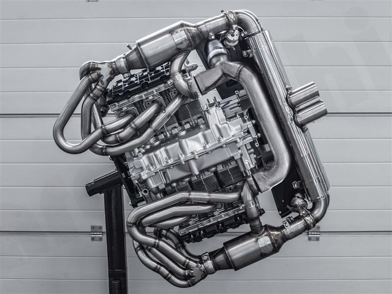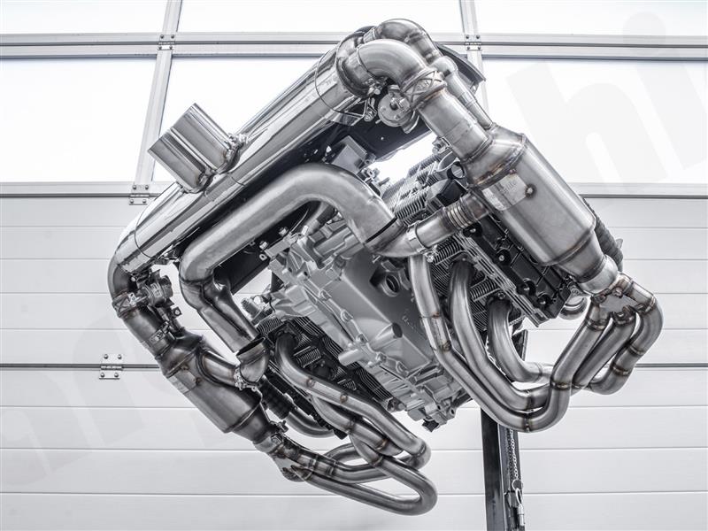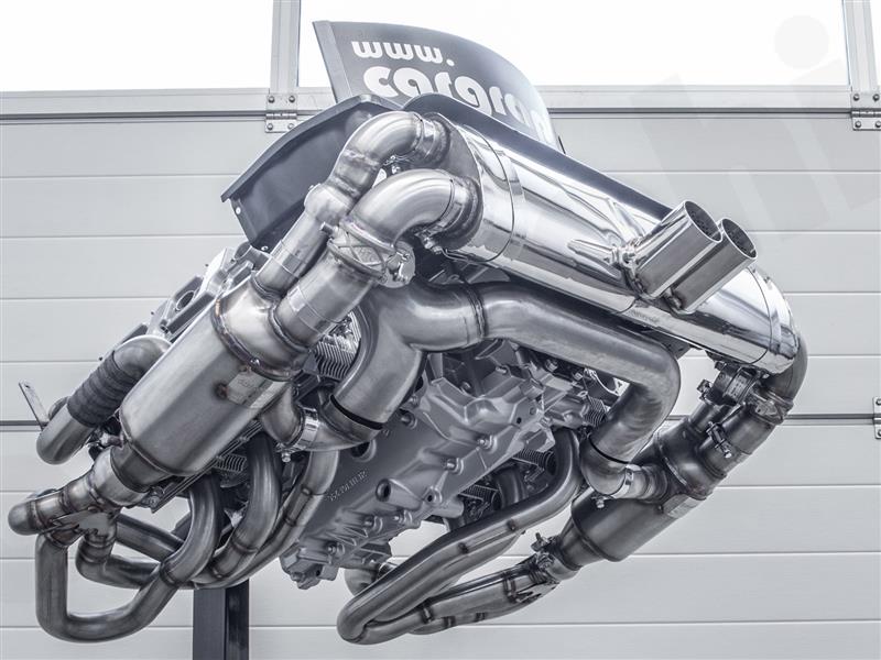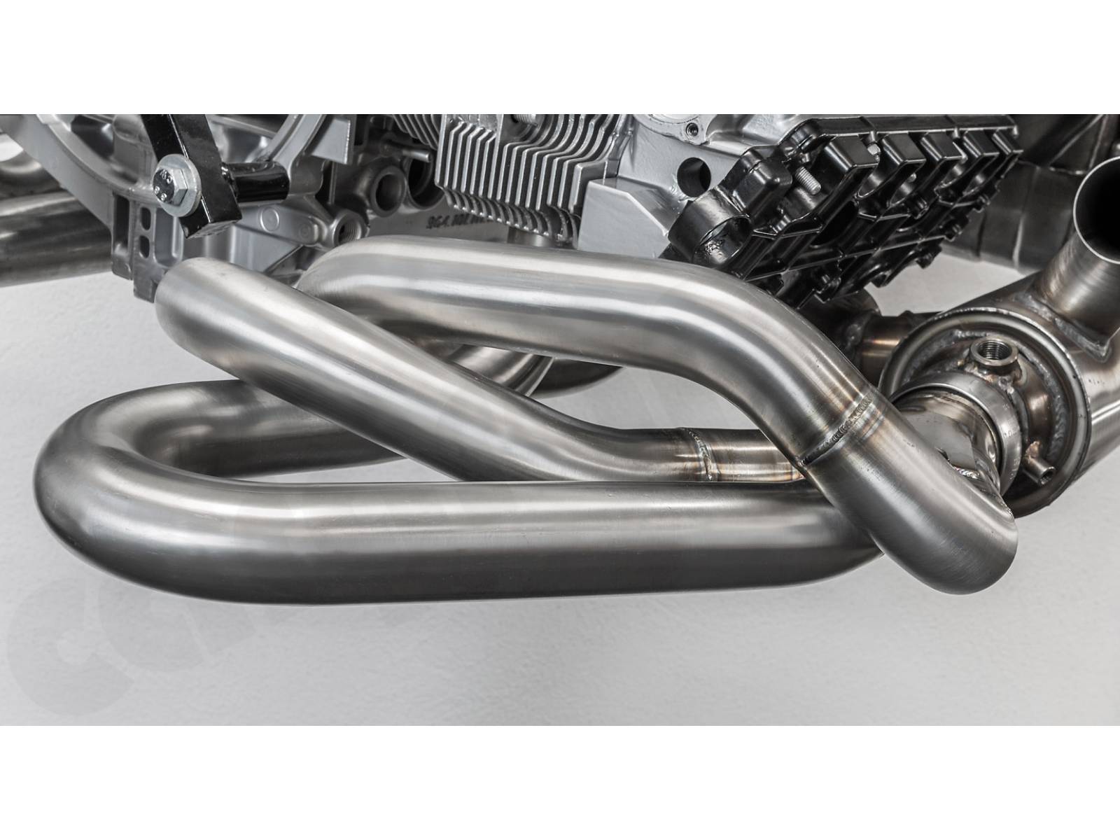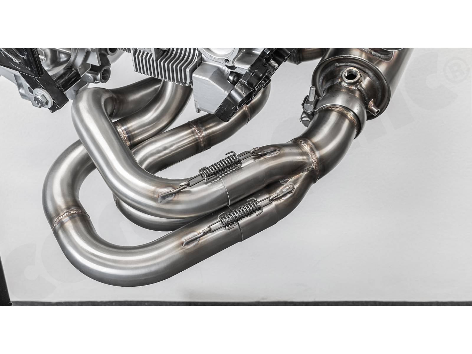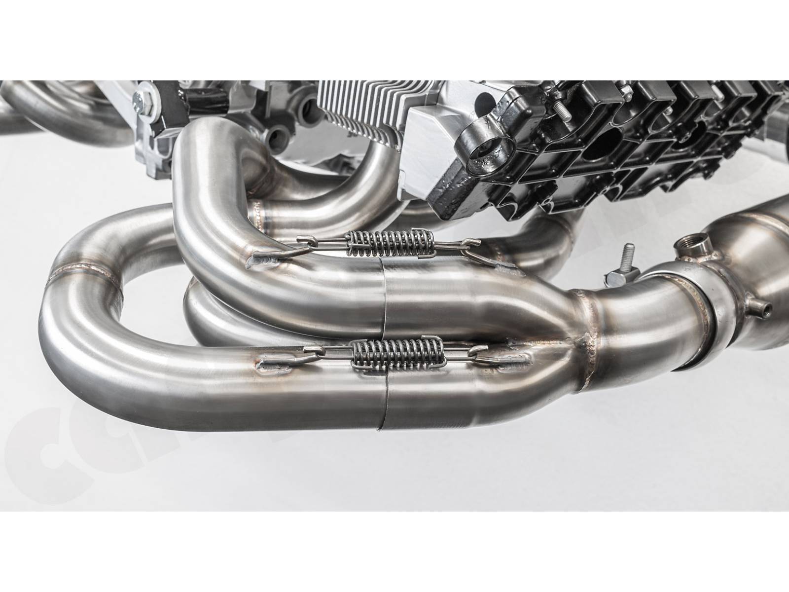 CARGRAPHIC GT Sport 排气系统,配备 ID42 GT 歧管套件,带/不带2x200cpsi 催化转化器,带加热功能,不带阀门,可与 OEM GT3 后消音器配合使用。