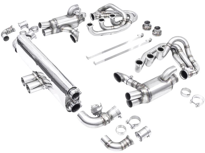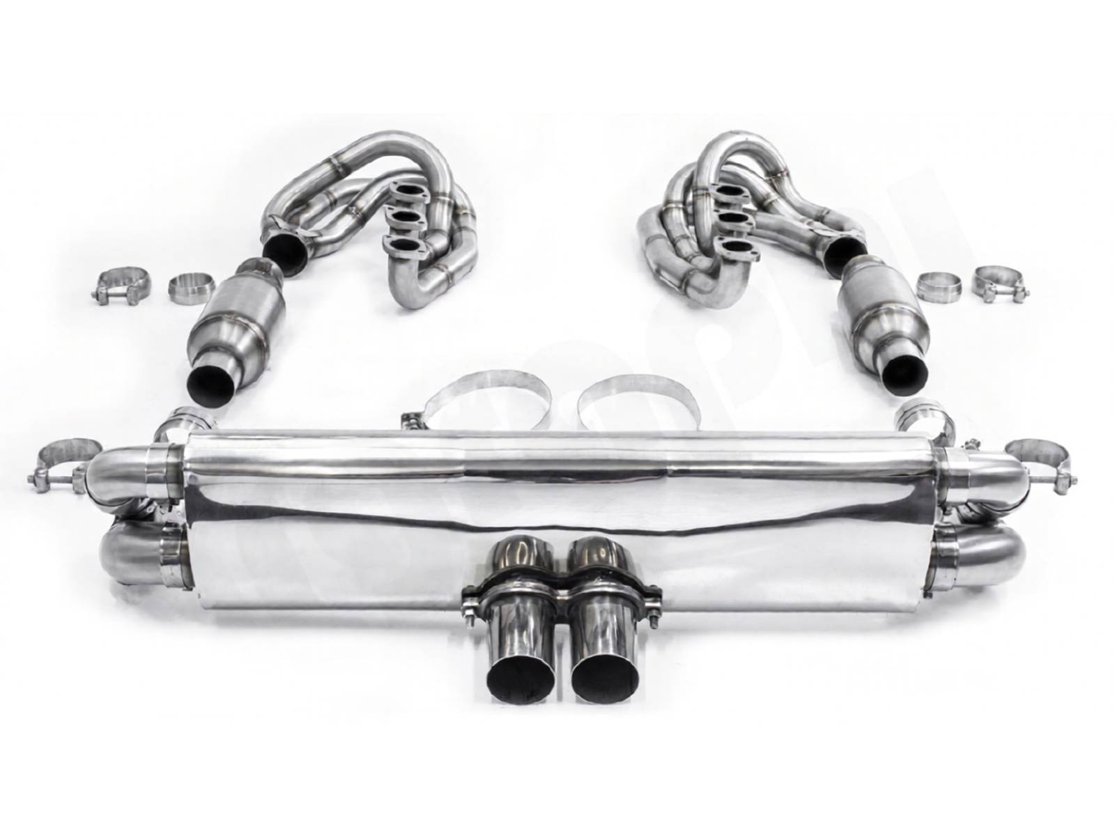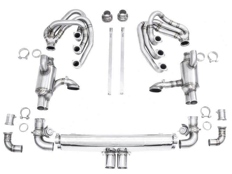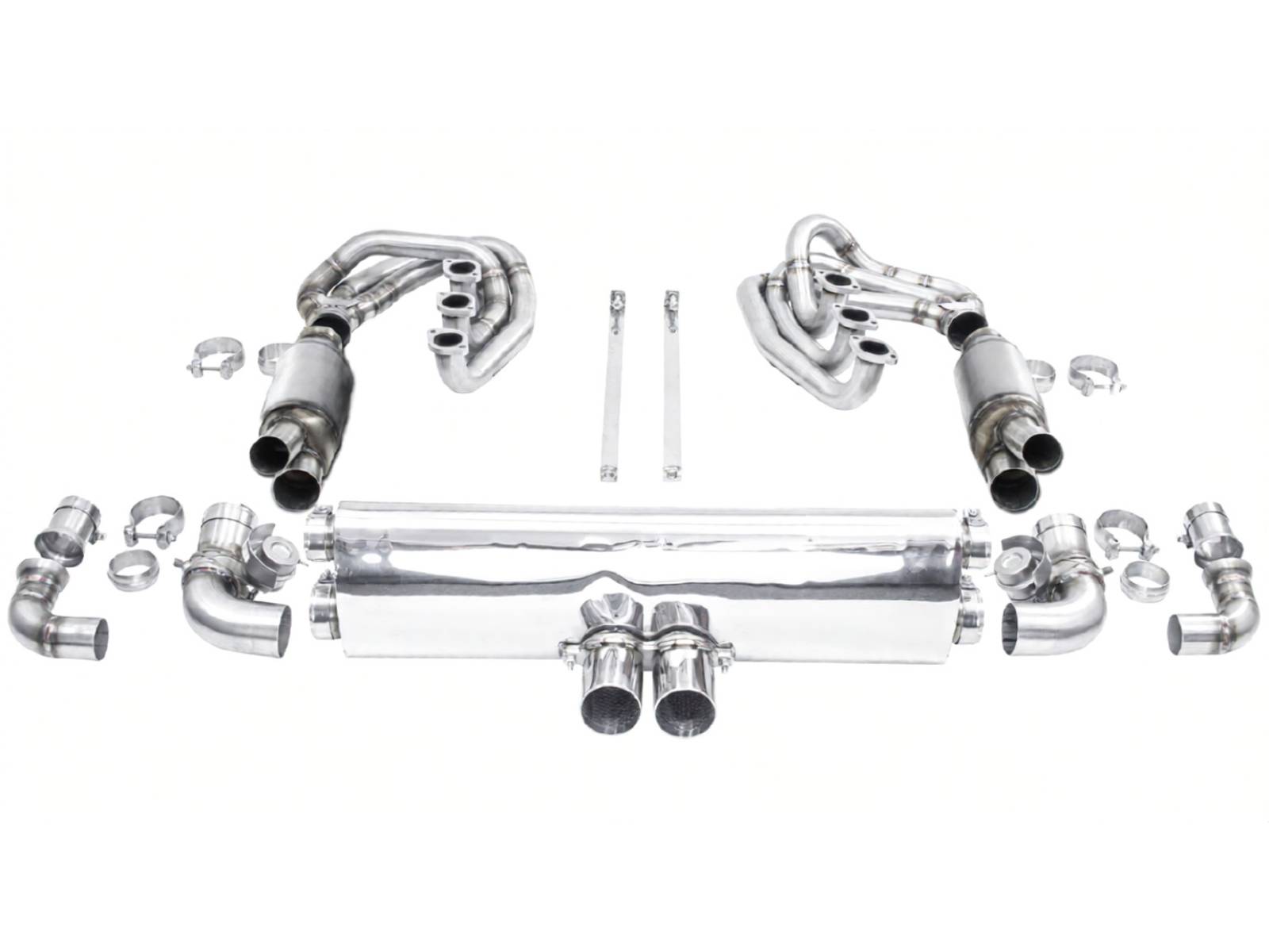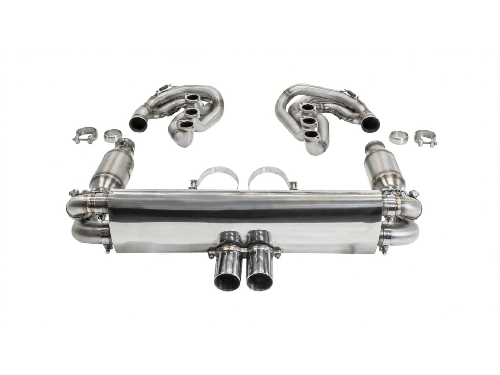CARGRAPHIC GT Sport 排气系统,配备 ID45 GT 歧管套件,带/不带2x200cpsi 催化转化器,带加热阀和排气阀 - 与 OEM GT3 后消音器配合使用。