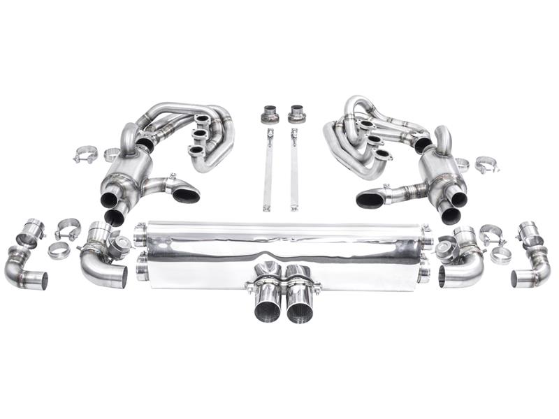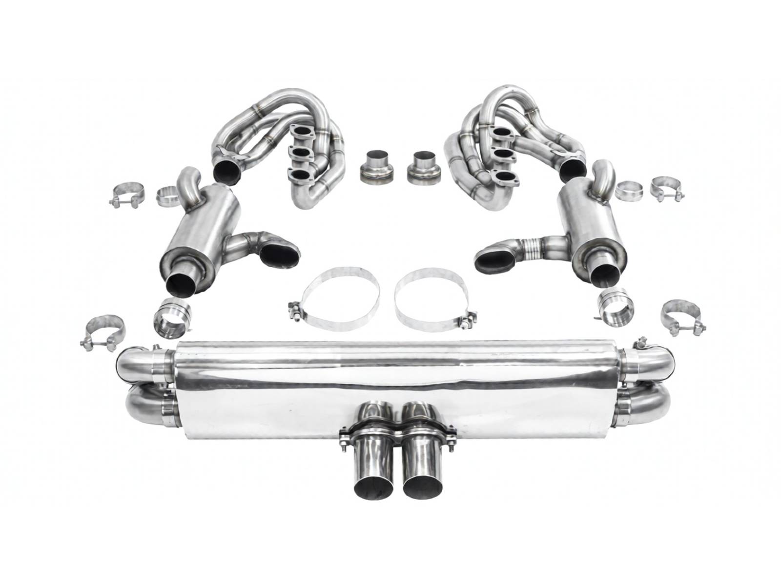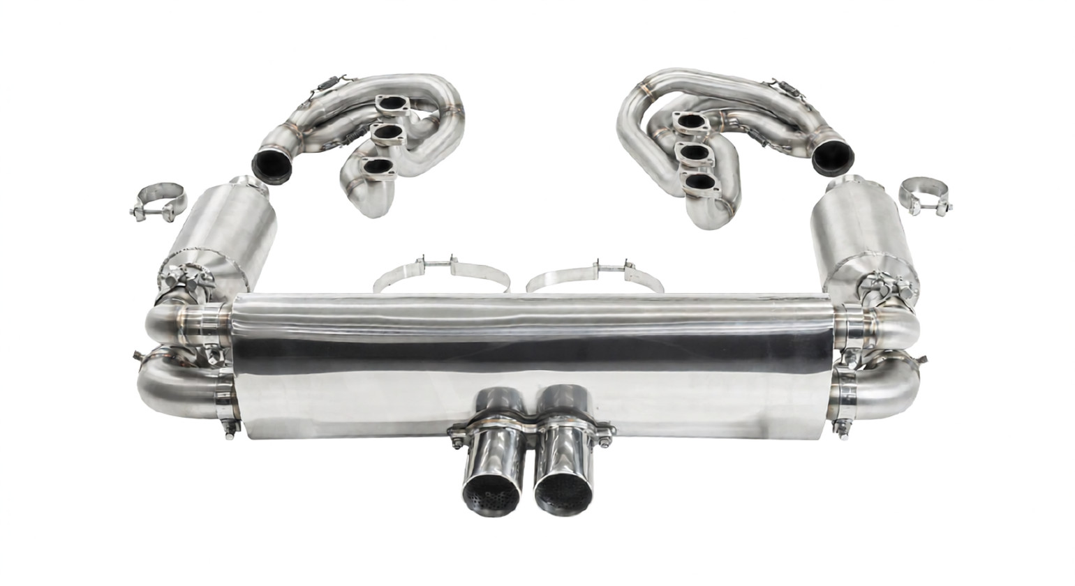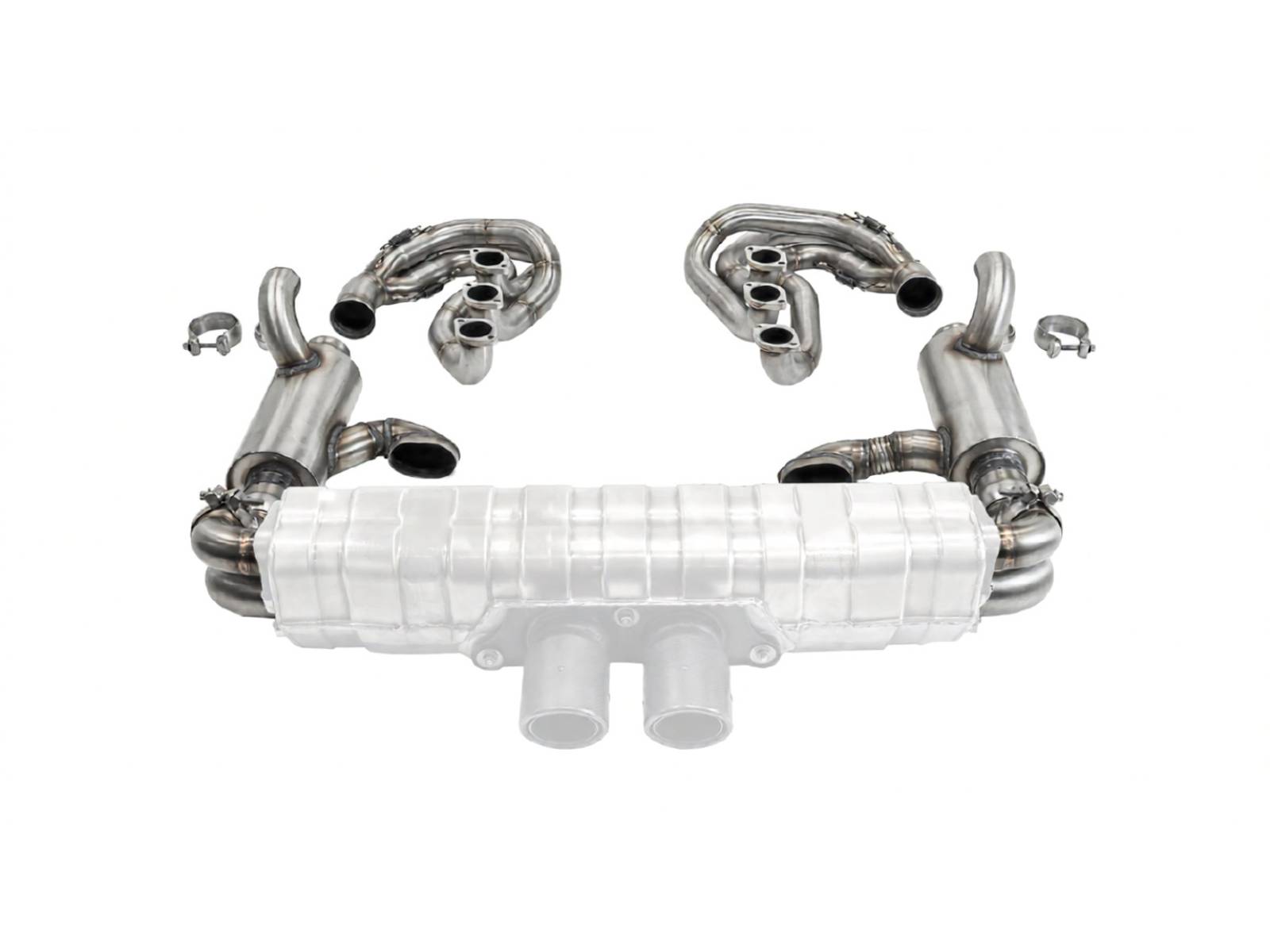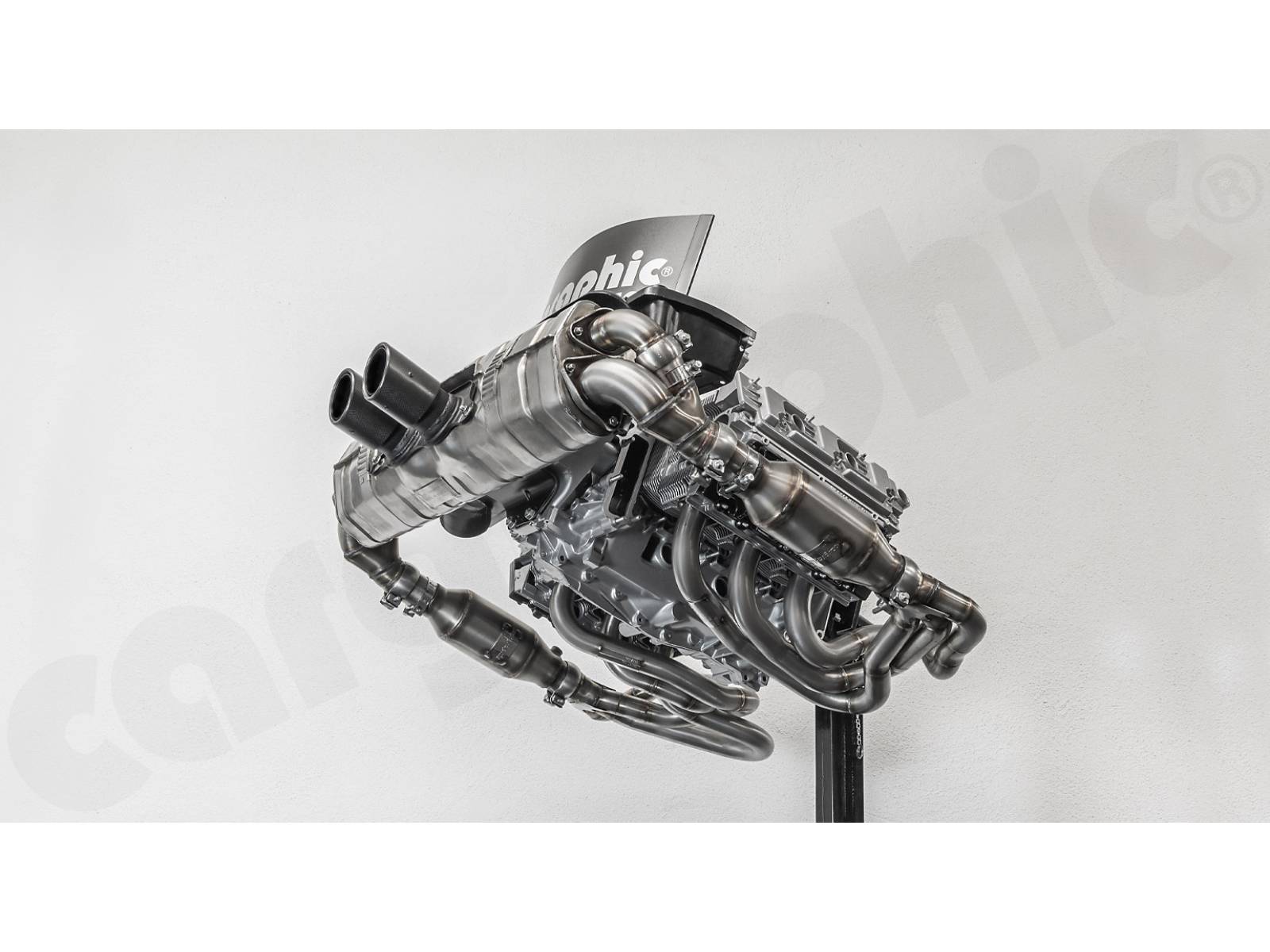CARGRAPHIC GT Sport 排气系统,配备 ID45 GT 歧管套件,带/不带2x200cpsi 催化转化器,带加热阀和排气阀 - 与 OEM GT3 后消音器配合使用。