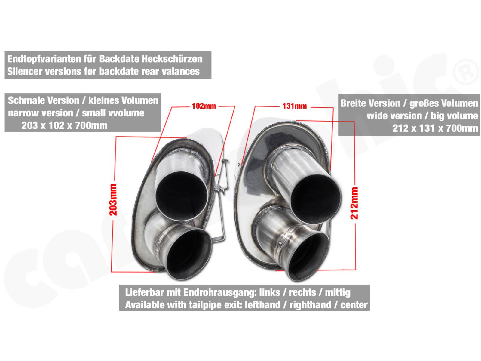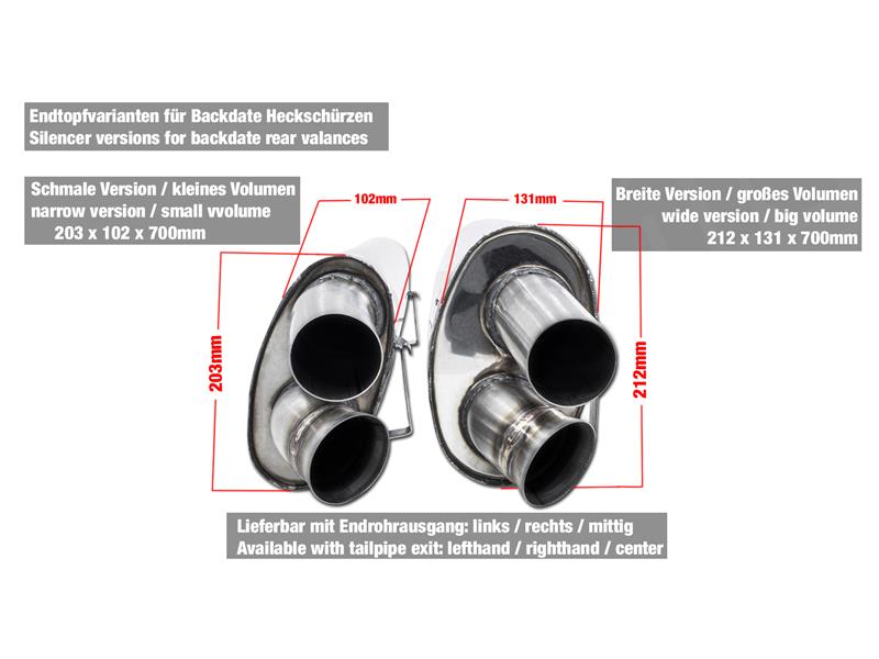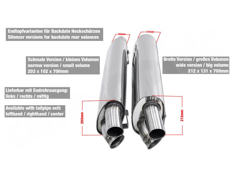 - 提供两种适用于复古风格后裙板的消音器版本。