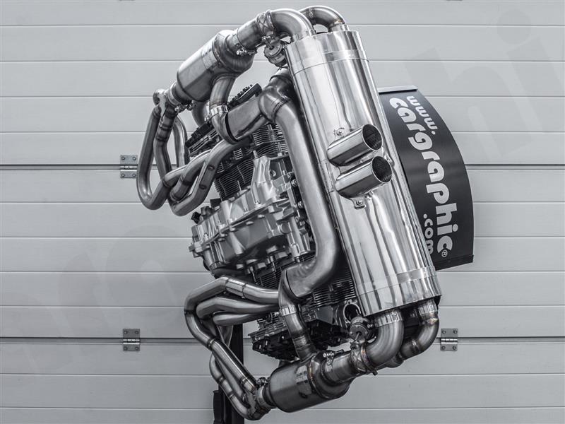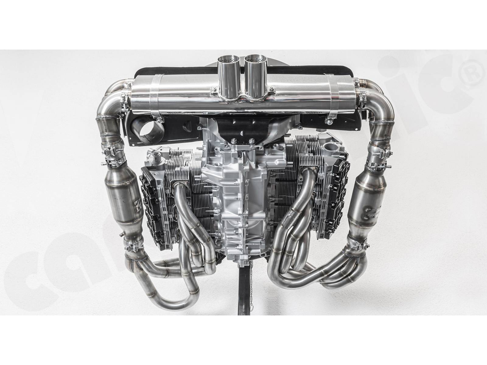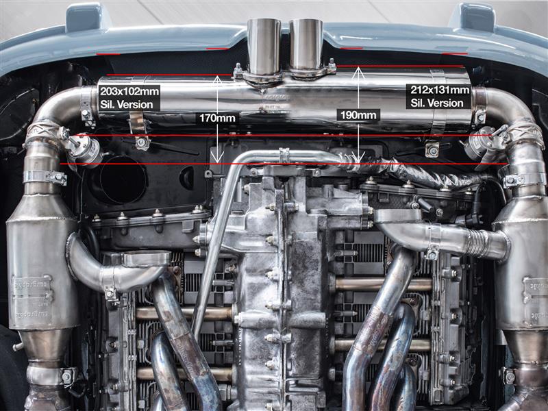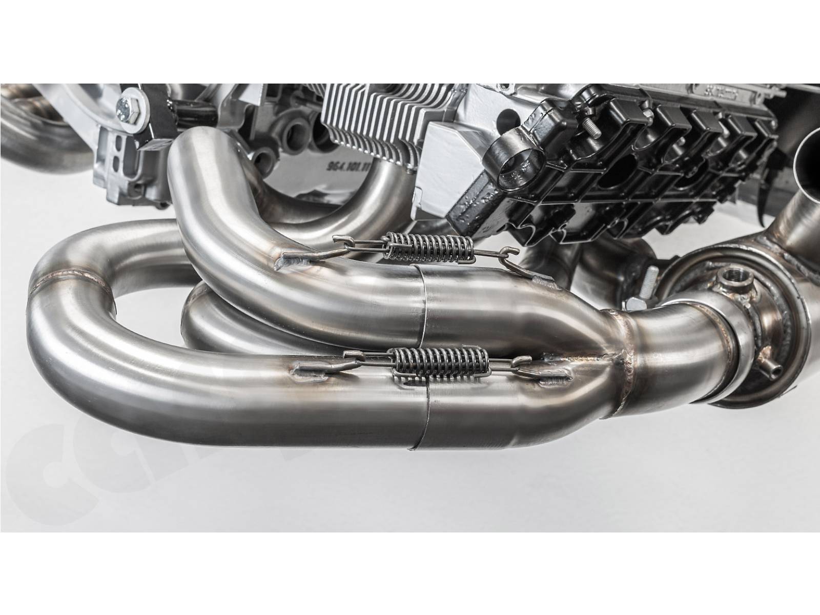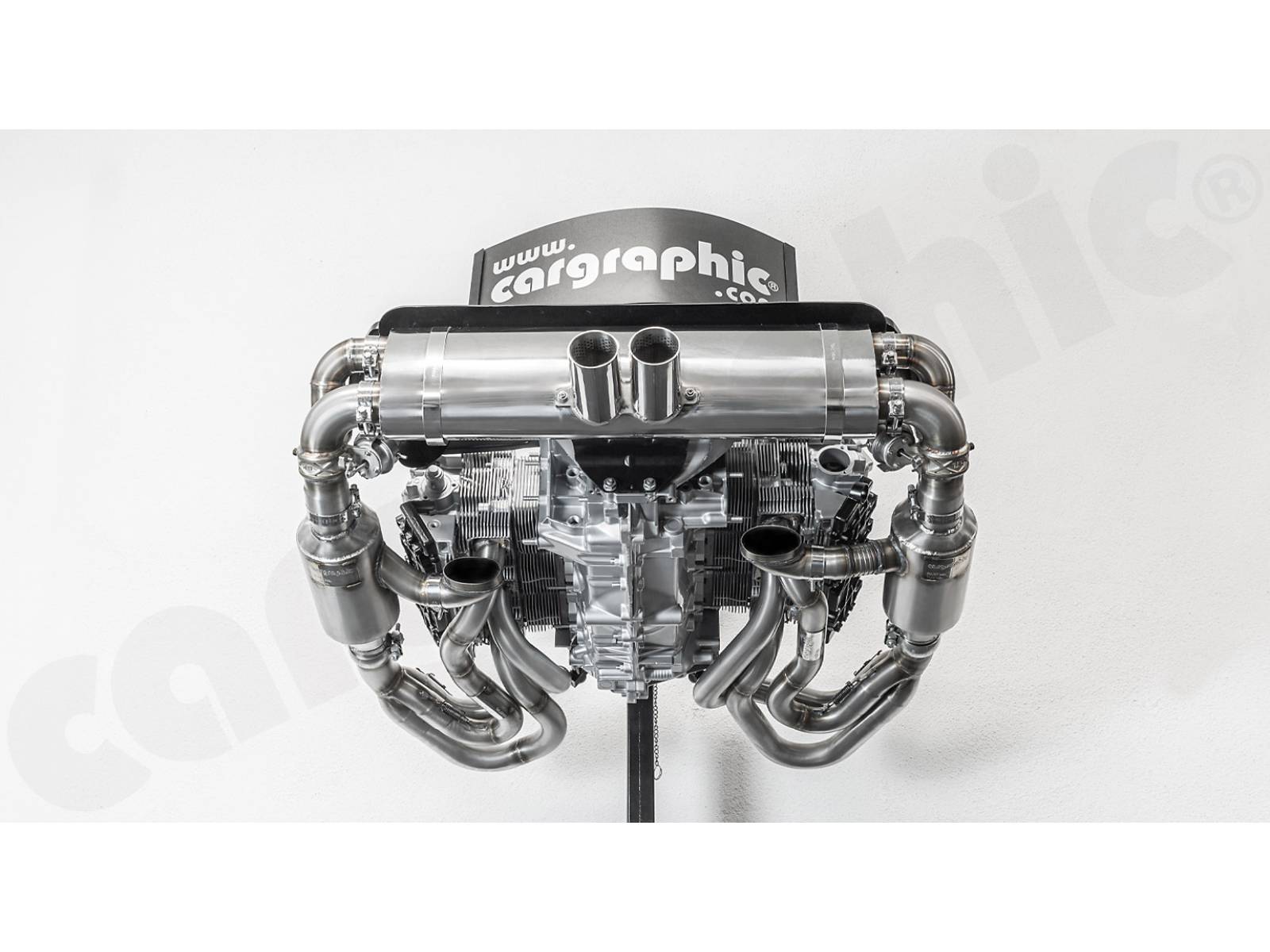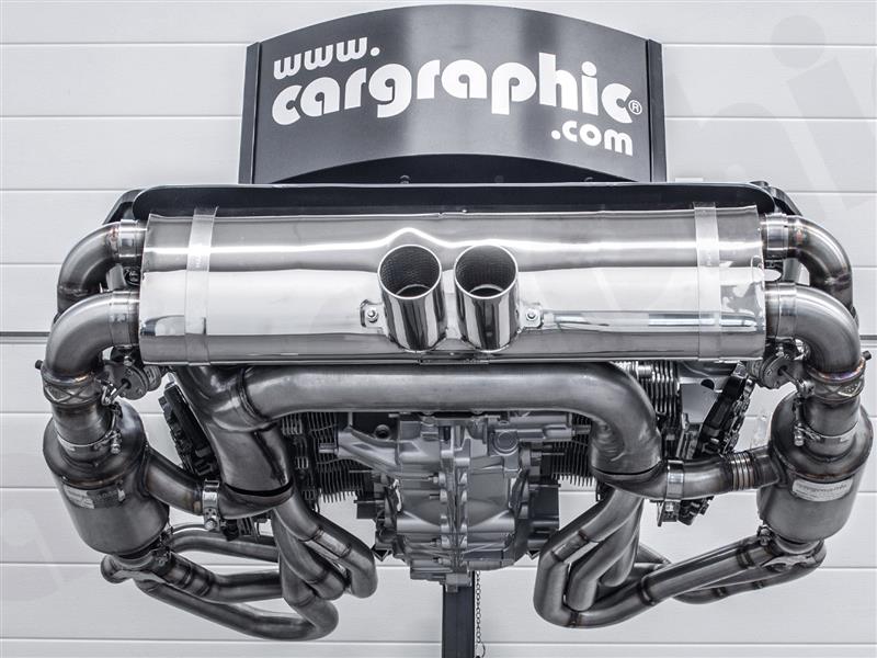 CARGRAPHIC GT Sport排气系统,复古风格,配备ID45 GT歧管套件,可选配2个200cpsi催化转化器、加热功能、排气阀和4>2流式后消音器,中置2x70mm排气口,GT3外观。