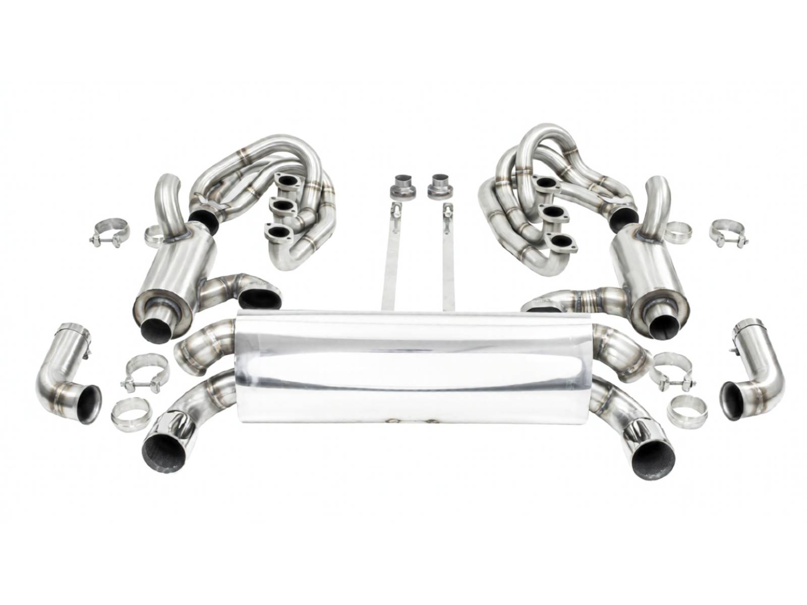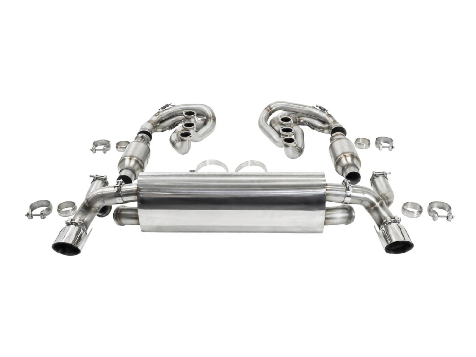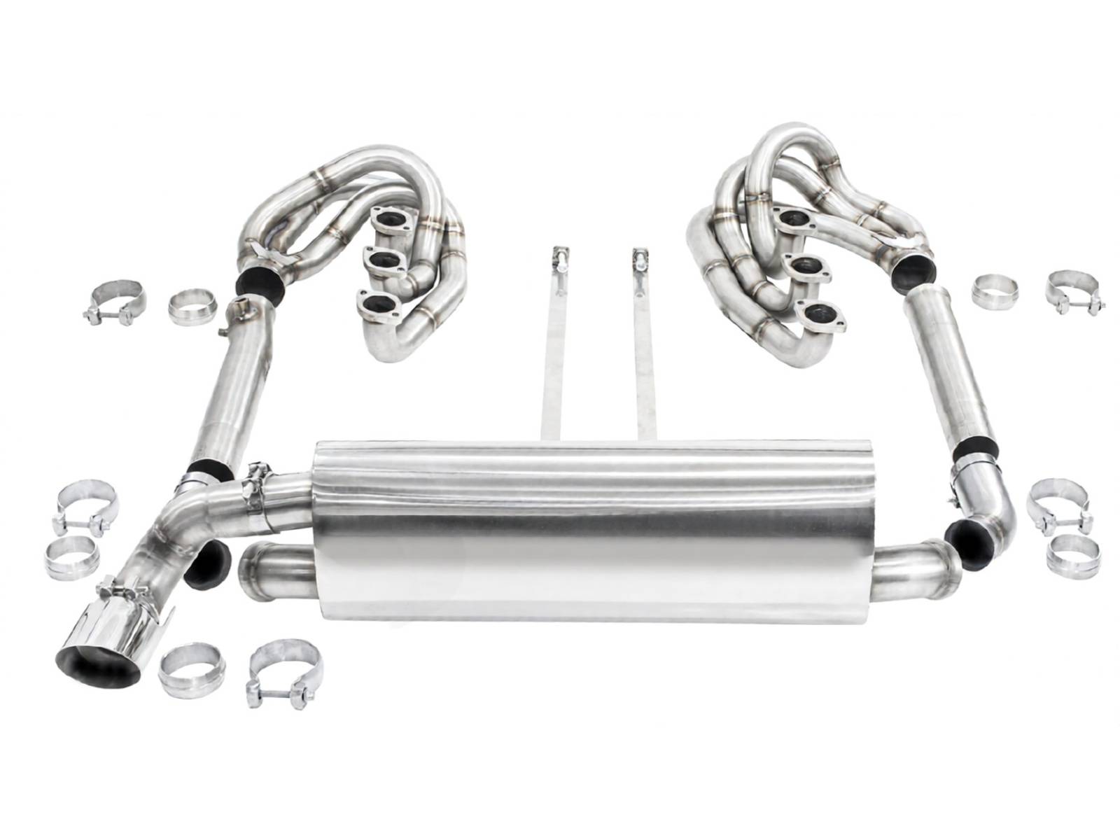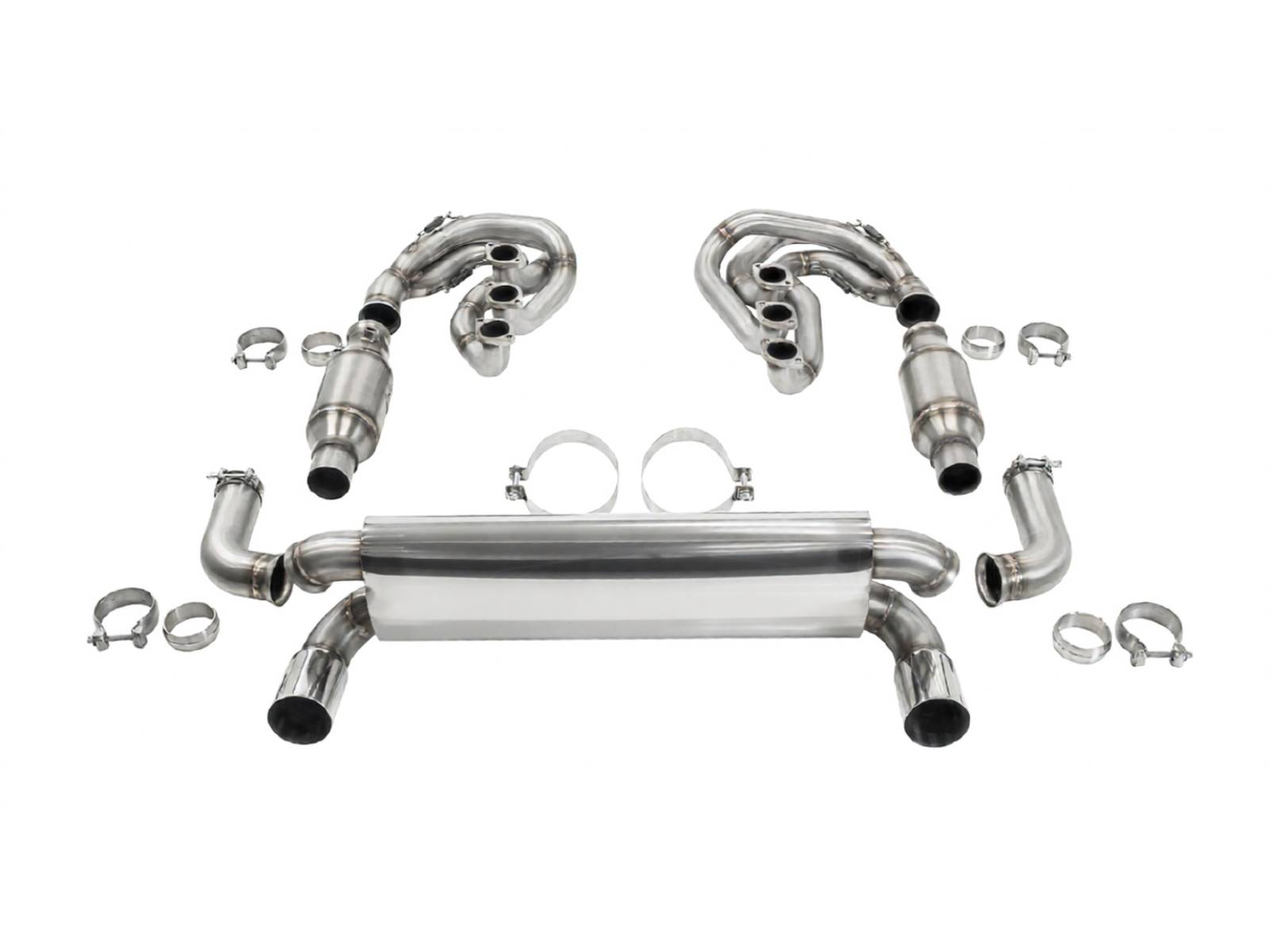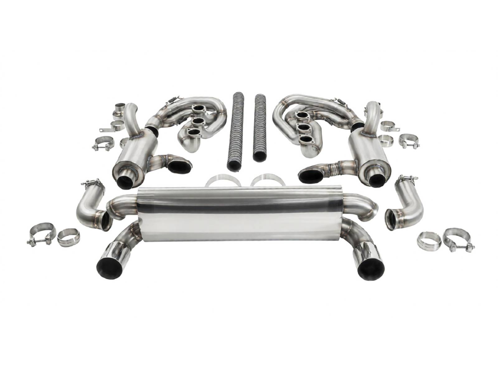 - 完整的系统,包括 2 个不锈钢 GT 歧管(内径 42 毫米初级歧管,带喇叭形集气箱)、高流量催化转换器套件或直通连接管和运动型后消音器——全部配置为右侧尾管出口,无排气阀。