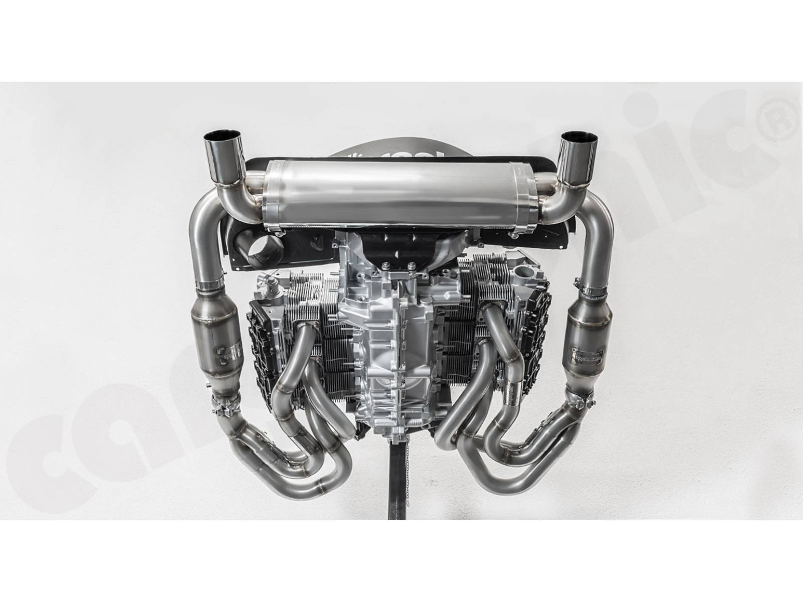 CARGRAPHIC GT 运动排气系统,带 ID42 GT 歧管,带/不带200cpsi 催化转化器,带加热功能和双流 AQ 后消音器,带 LH 和 RH 尾管出口。