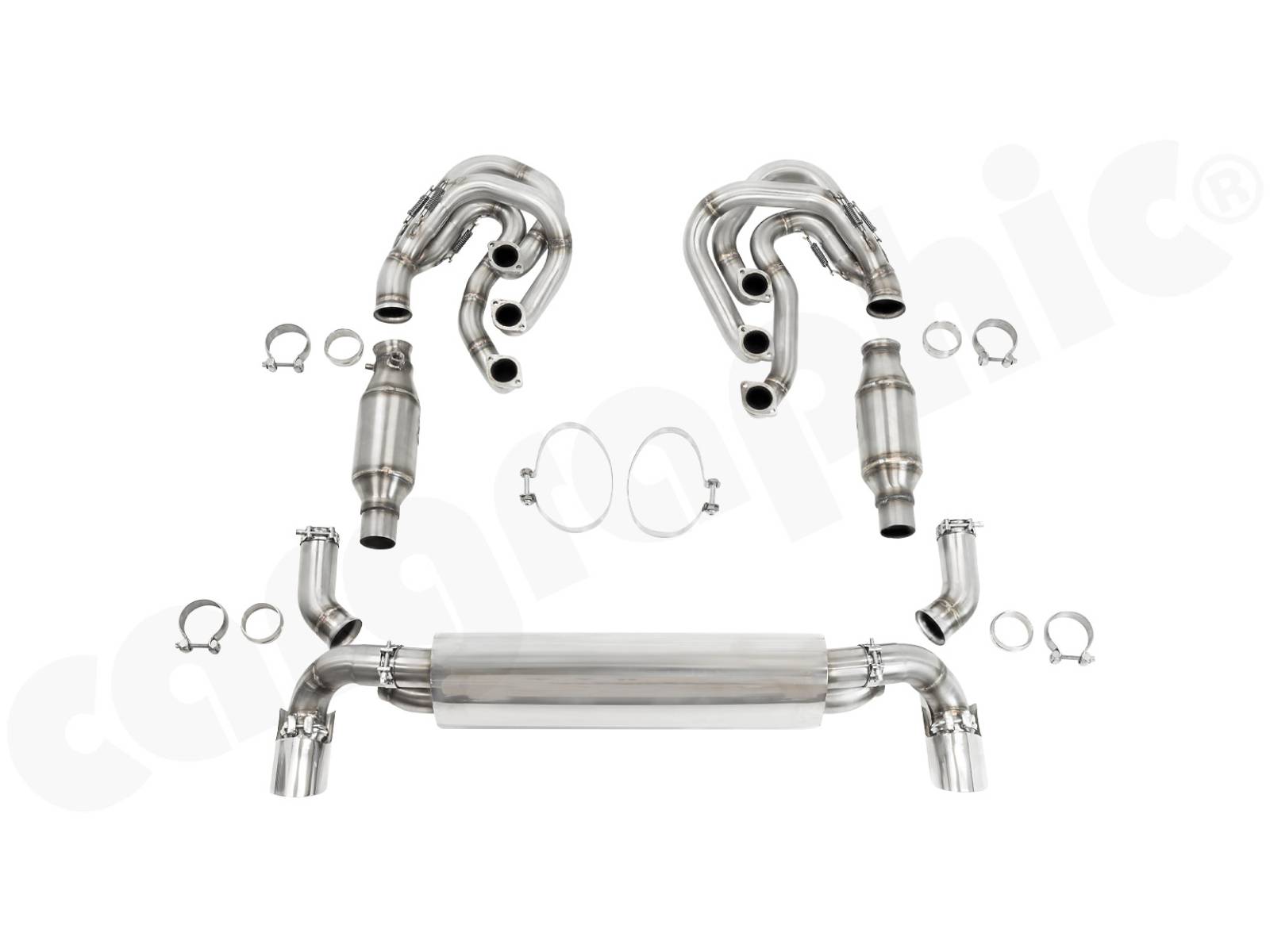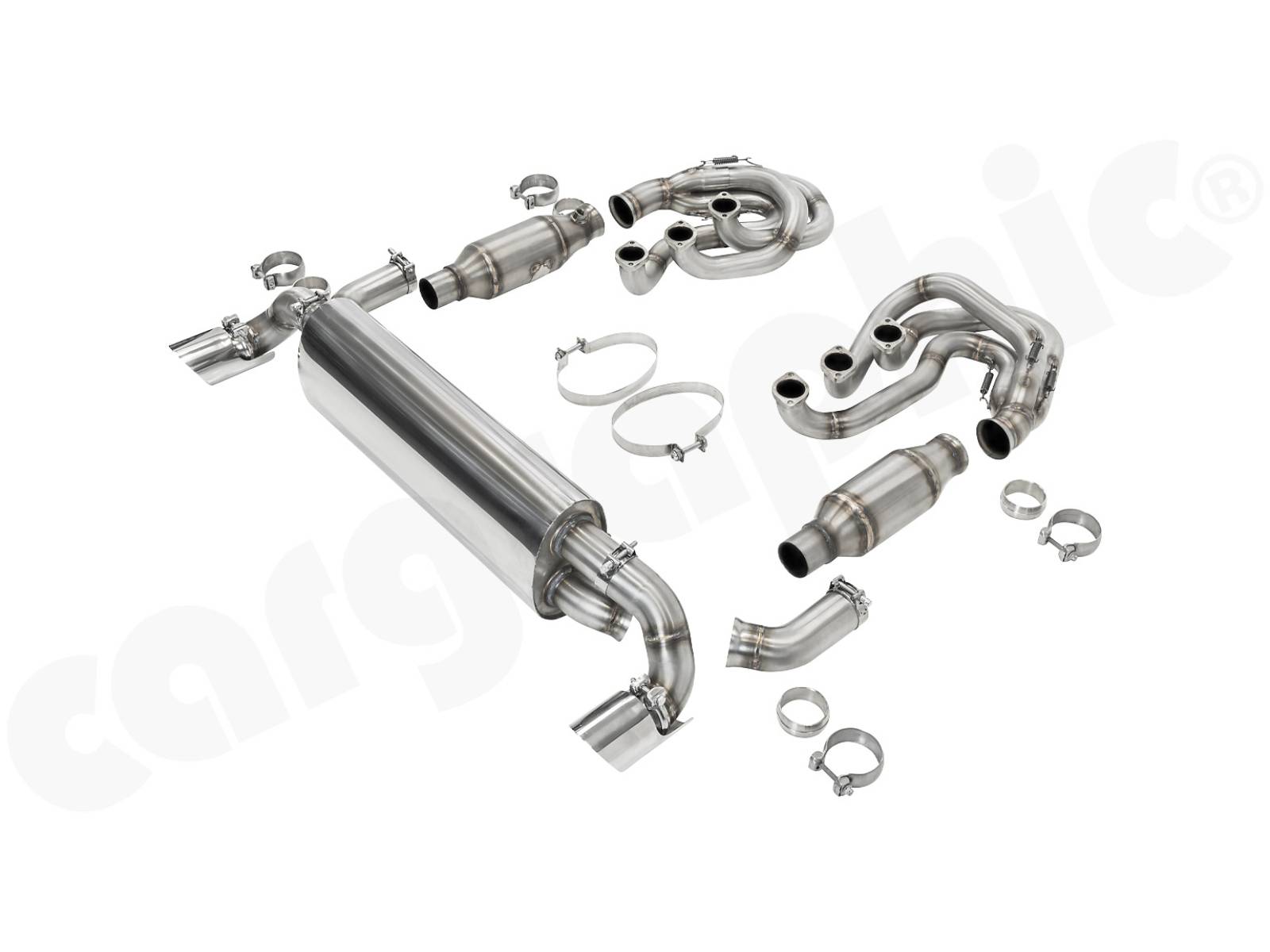 • CARGRAPHIC 运动型歧管套装,配备 2 英寸/50,80 毫米主歧管和 2x 200cpsi Ø130 毫米 HD 三金属催化转换器