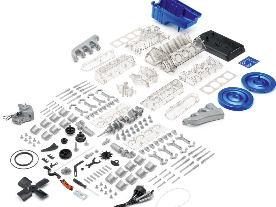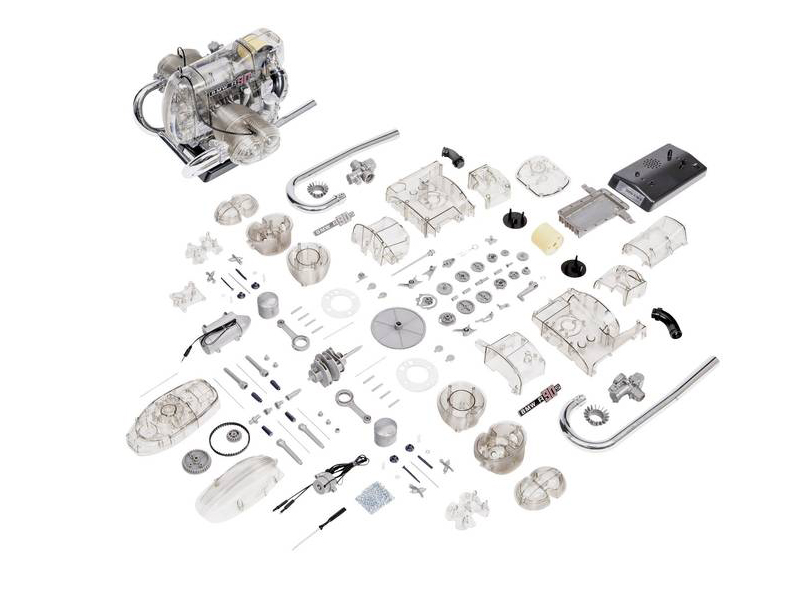 使用超过 290 个部件,您可以构建一个详细、透明的发动机模型,其中所有部件都可以移动,就像真实的发动机一样。