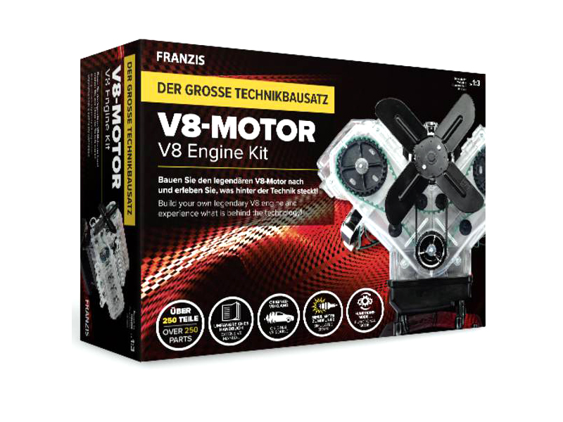 With over 300 parts you build a detailed transparent engine model in the scale 1: 3, in which all parts move like the big prototype. The components can be simply put together and screwed together - completely without glue.