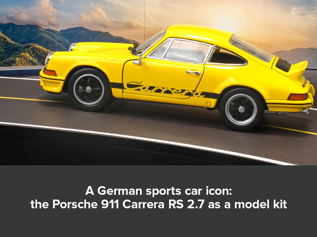 只需 18 步,您就可以在传奇保时捷 911 Carrera RS 2.7 的金属模型版(1:24 比例)上插上和拧上螺丝,体验高品质的保时捷体验。模型采用原始白色,配以绿色“Carrera”字样,完美传达出风格和魅力。包括 Carrera RS 音响模块!