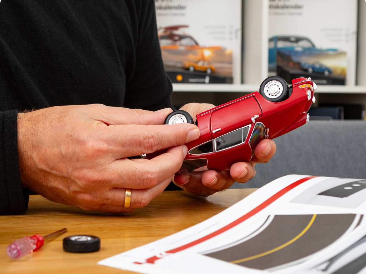 随附的 72 页书籍包含保时捷 Carrera RS 的历史和故事,以及多部件模型车和所有其他日历内容的详细组装说明。这使组装汽车变得轻而易举,并消除了任何压力。装有组装所需零件的可翻转盒子由环保纸板制成。正确组装后,每个盒子的正面和背面都会产生大幅面、美观的图案。