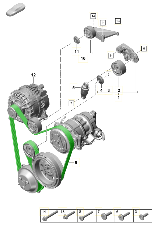 交流发电机皮带。