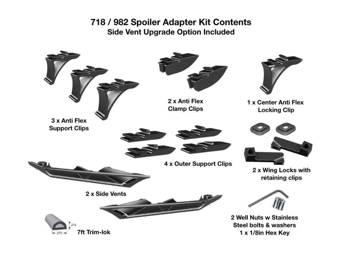 991 扰流板安装点与 718 Boxster / Cayman 不兼容,因此该套件通过一组独特的适配器解决了这个问题:
