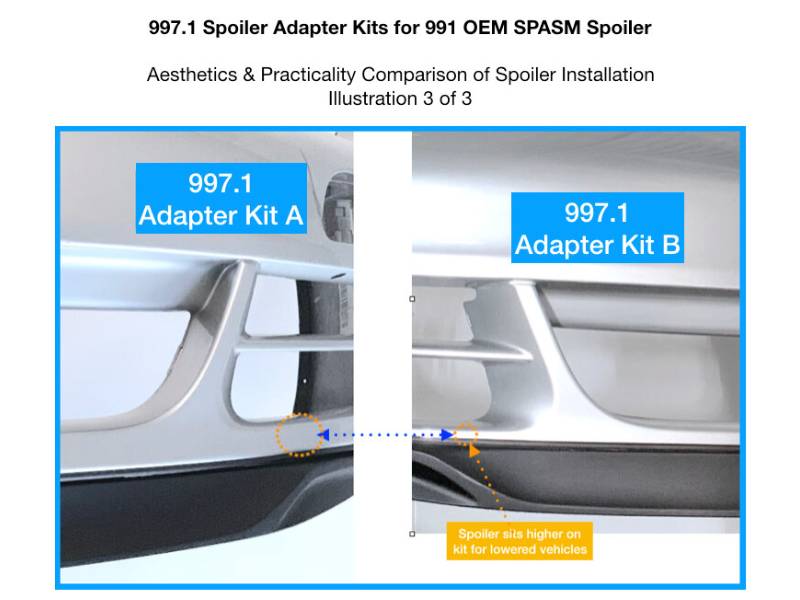 991 扰流板安装点与 997 不兼容,因此该套件通过一组独特的适配器解决了这个问题: