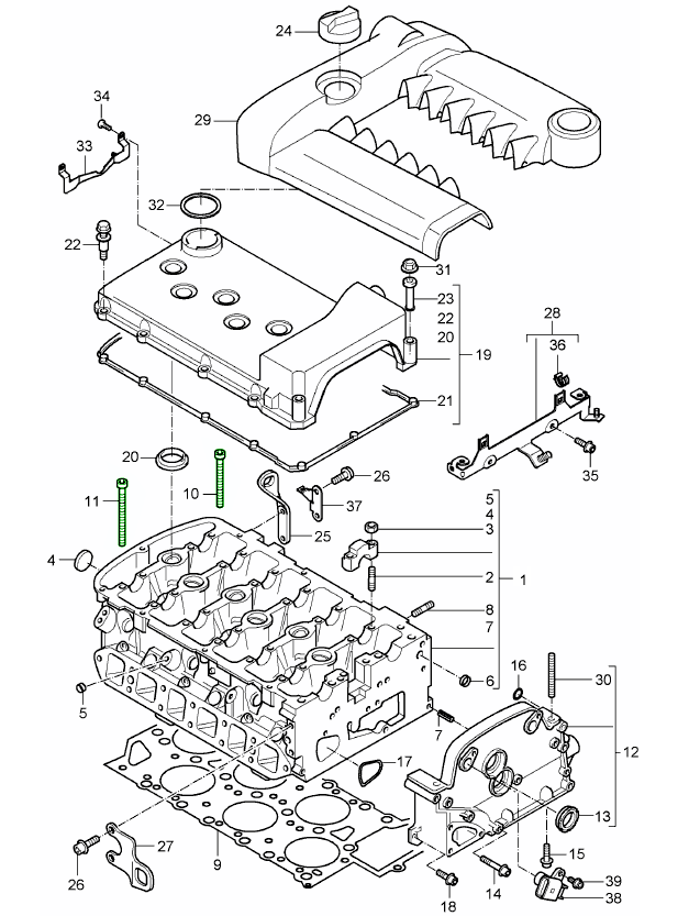 气缸盖螺栓组,包括:13 x 螺钉,圆柱头 M10 X 1.5 X 111(保时捷零件编号 95510438400)