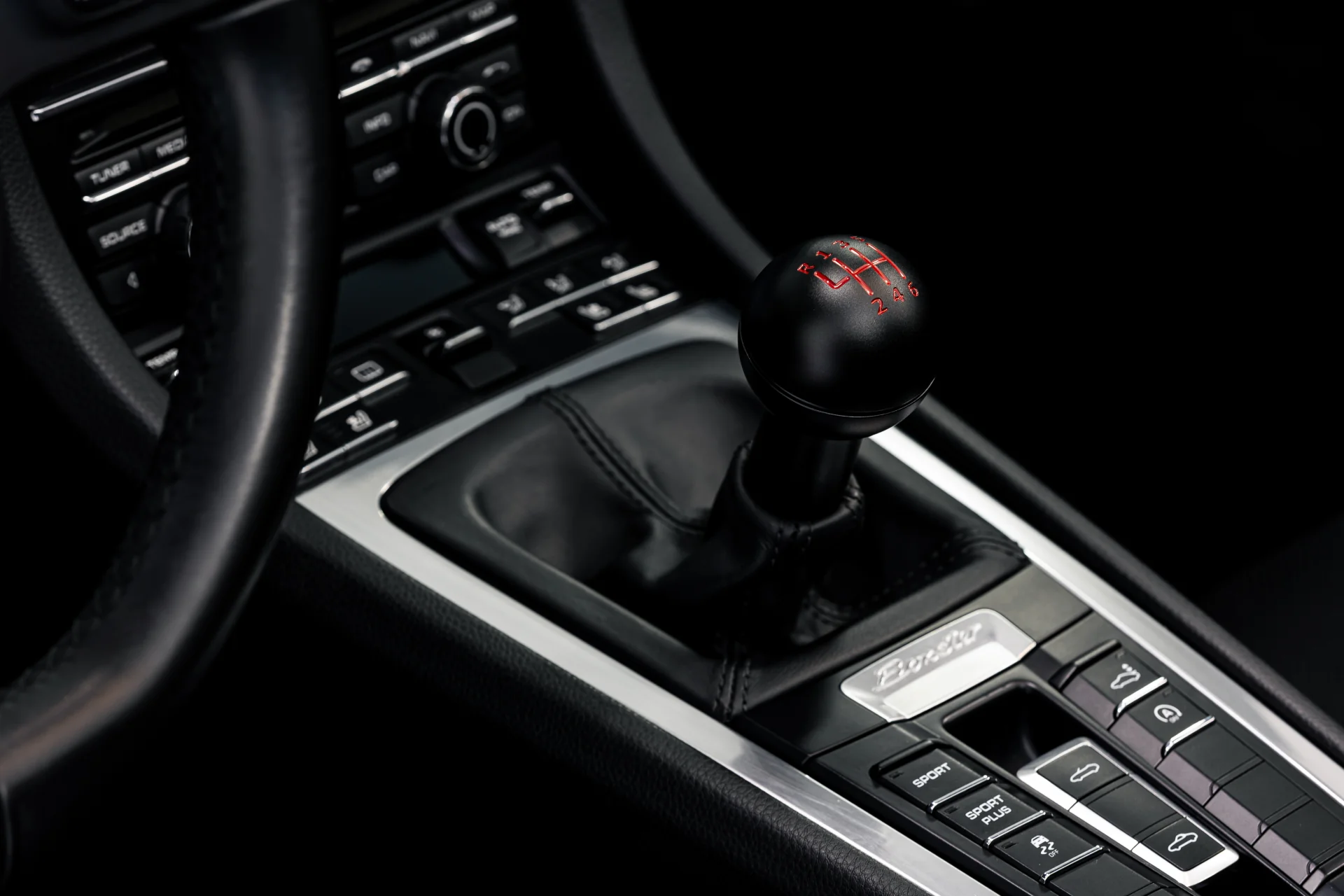 直径为 2 英寸的旋钮可以牢固地握在手掌中,圆周切口提供灵活性并增强抓握力。底座轴经过专门加工,适合保时捷的矩形换挡杆,并通过高固定螺钉牢固固定,完全隐藏在标准高度轴中。OEM 换挡保护罩无缝集成在底座上,实现工厂般的贴合和饰面。如果您当前的换挡旋钮设置有一个集成的 1 件式换挡旋钮/保护罩(997 之前的保时捷车型),您可以切断保护罩以与经典换挡旋钮一起使用。