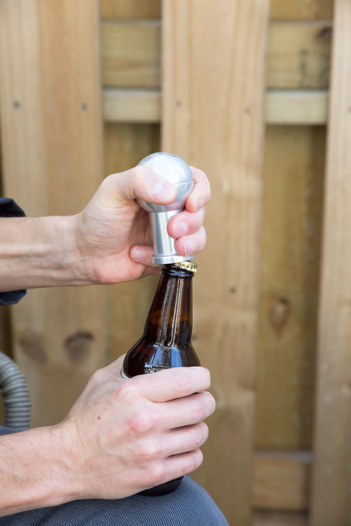 - 将啤酒旋钮旋转到瓶盖上方即可“弹出”瓶盖!