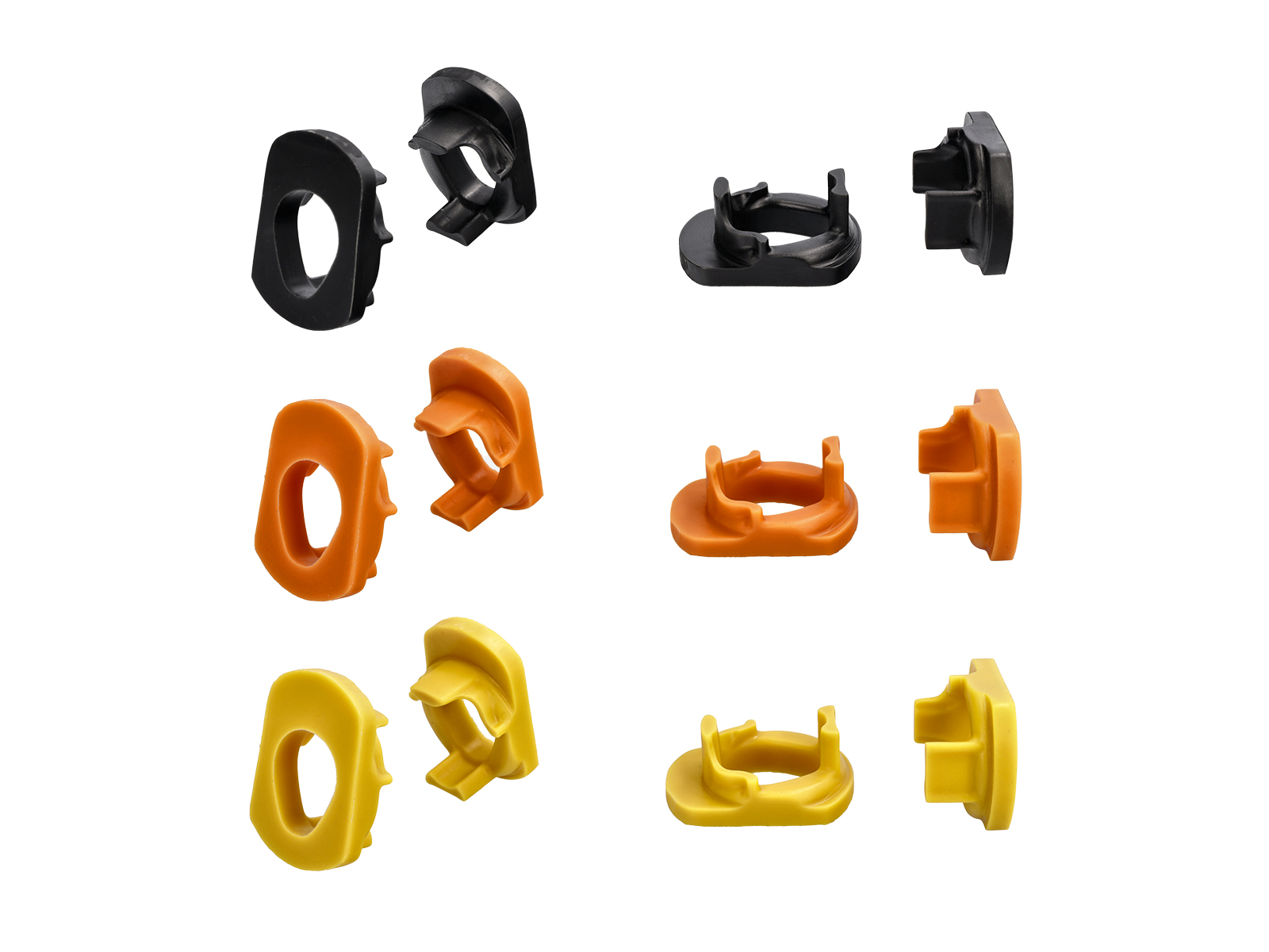 1.软(60A)-橙色:为了提高性能,恢复和保存您的 OEM 支架,同时将噪音、振动和声振粗糙度(NVH)降至最低