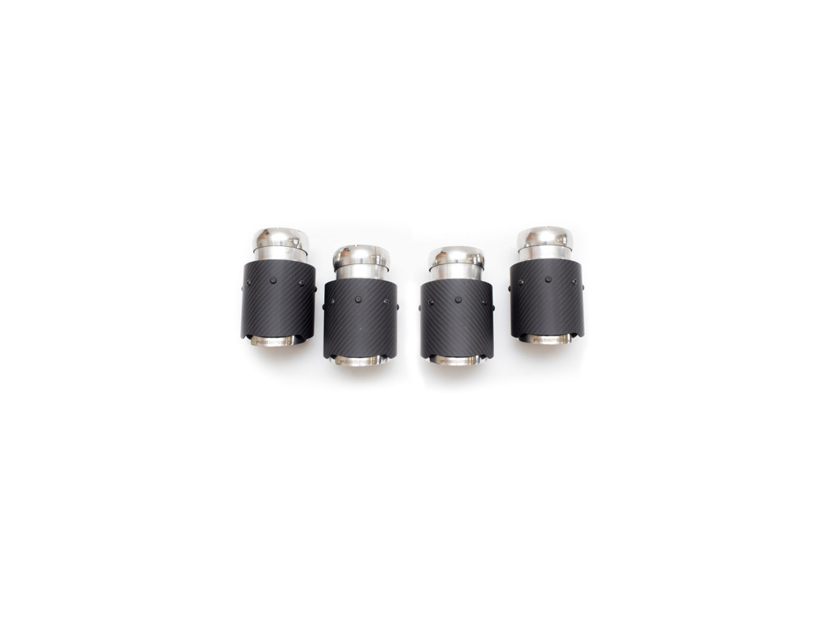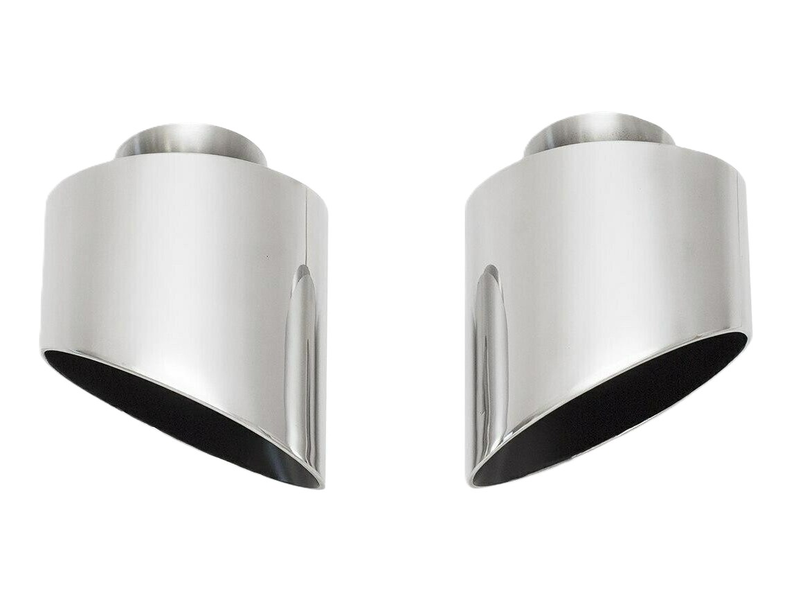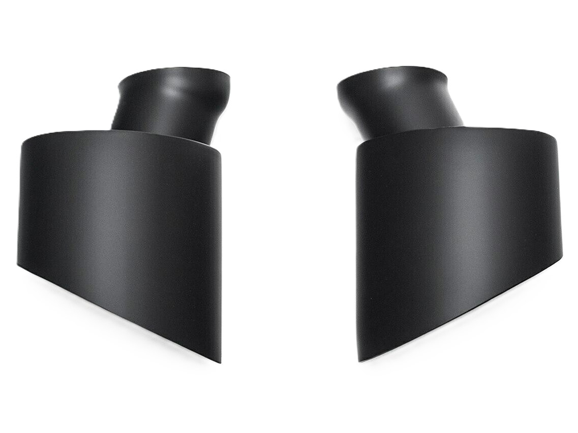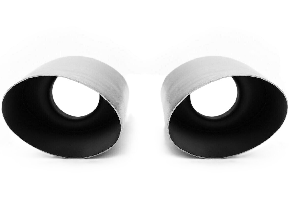 - 它们取代了原厂排气管尾嘴,在视觉上进行了升级:椭圆形斜切设计、单壁结构、高级表面处理,与原厂尾嘴相比,美观度有所提升。