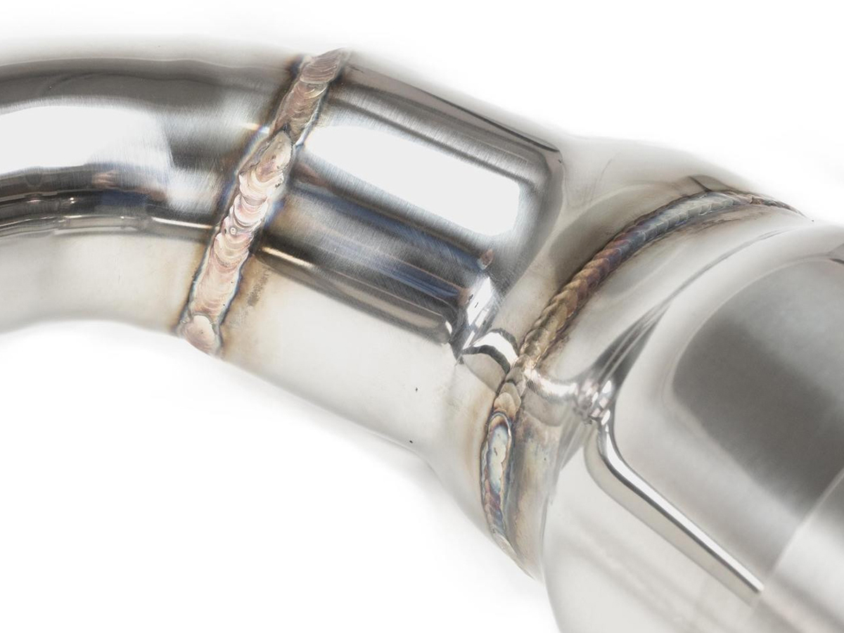 注意:螺栓固定安装 - 需要在工厂排气断点处进行微小切割以安装 Fabspeed 产品(参考 OEM 上的凹坑位置)