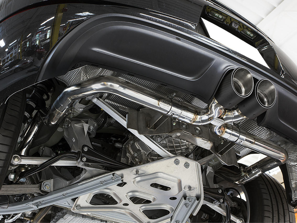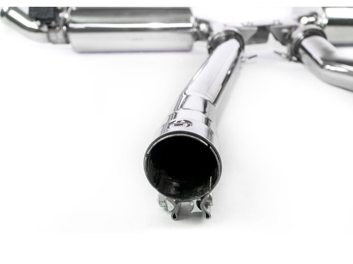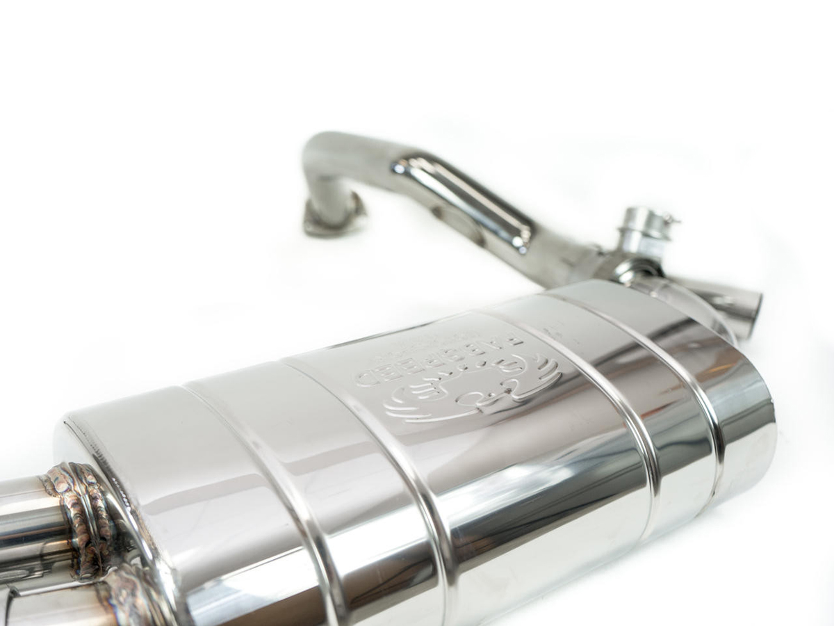这款精简版的 Valvetronic 排气系统,足以释放 3.8 升发动机的全部澎湃声浪。您将体验到与 GT4 相得益彰的轰鸣声。发动机的轰鸣声和回火声此起彼伏,降档时更是声浪澎湃,让周围的一切目光和耳朵都聚焦于您。我们绝非夸张,这套系统能让最吝啬的驾驶者露出满意的笑容。这款排气系统声音洪亮——适合使用原厂排气歧管的车辆,也非常适合赛道驾驶,作为全套性能套件的一部分。如果您担心赛道上的噪音限制,可以搭配我们的调低套件。