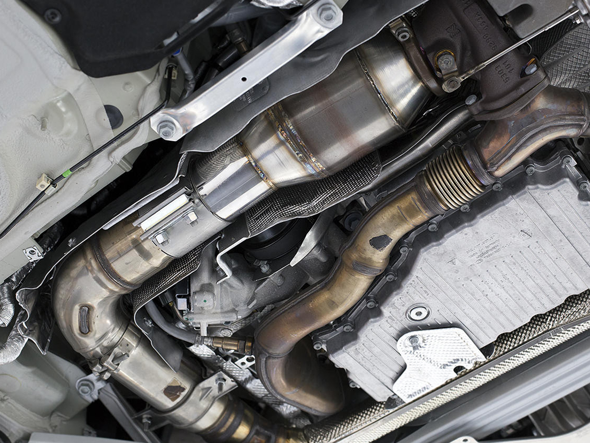 • CAT-BACK 排放法规螺栓固定于 OEM 保时捷催化转化器上。