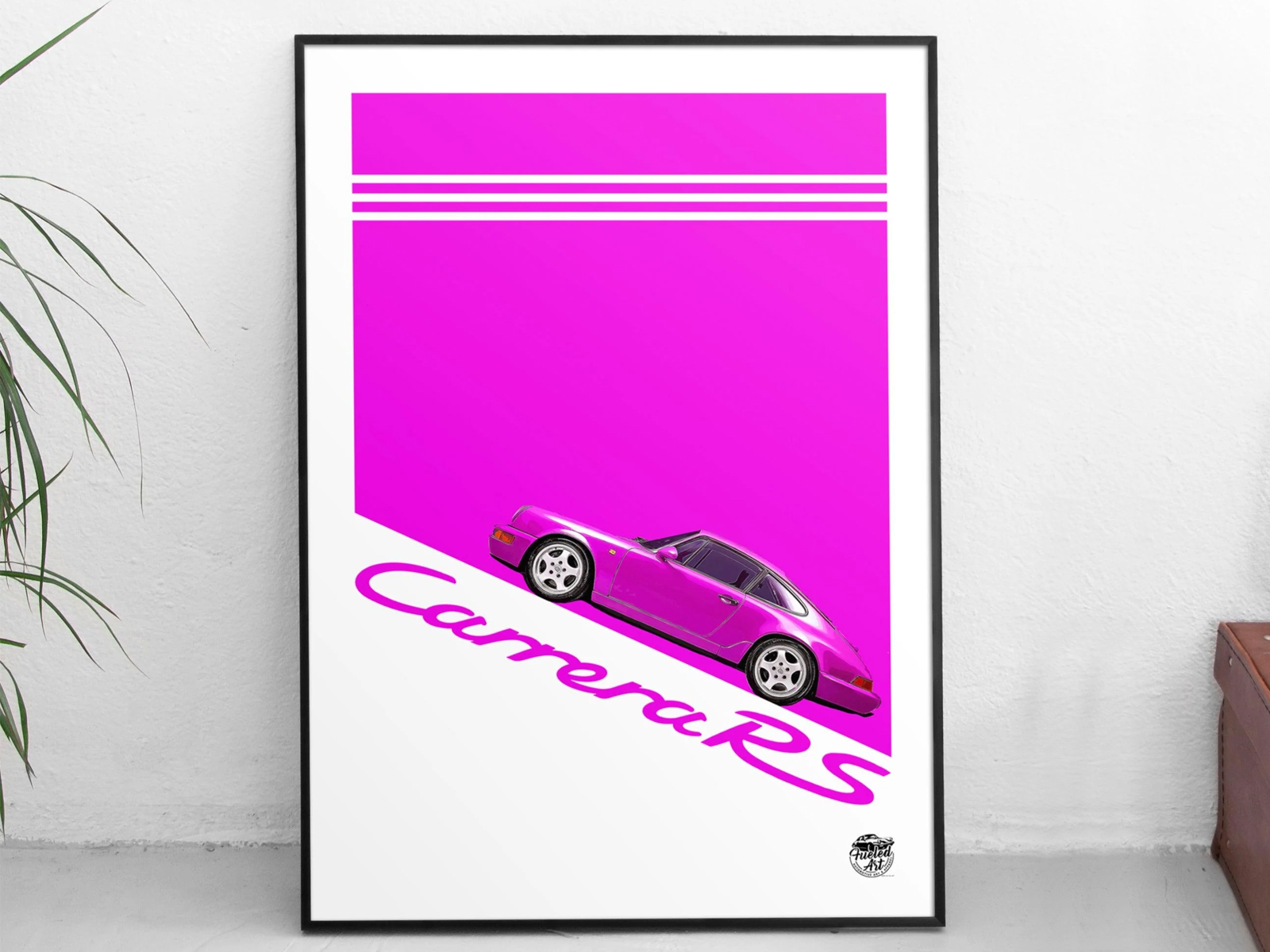 黑色边框保时捷 911 964 Carrera RS 海报用 Fueled.art 的这幅精美艺术版画来庆祝保时捷 911 964 Carrera RS 的原始驾驶体验。964 Carrera RS 以其轻量化设计、简约内饰和惊艳性能而闻名,是纯粹主义者的梦想,体现了保时捷的赛车传统。