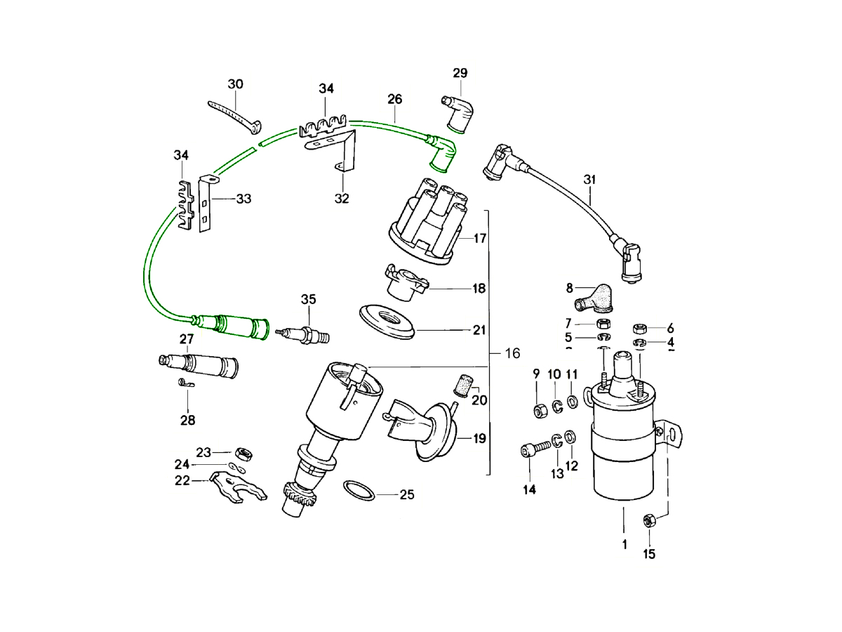点火线(高压线)477905441 是保时捷 924 的原厂规格导线,用于将高压火花从分电器或点火线圈传输到火花塞。它确保火花在正确的时间到达火花塞,并具有足够的强度以实现可靠的燃烧。