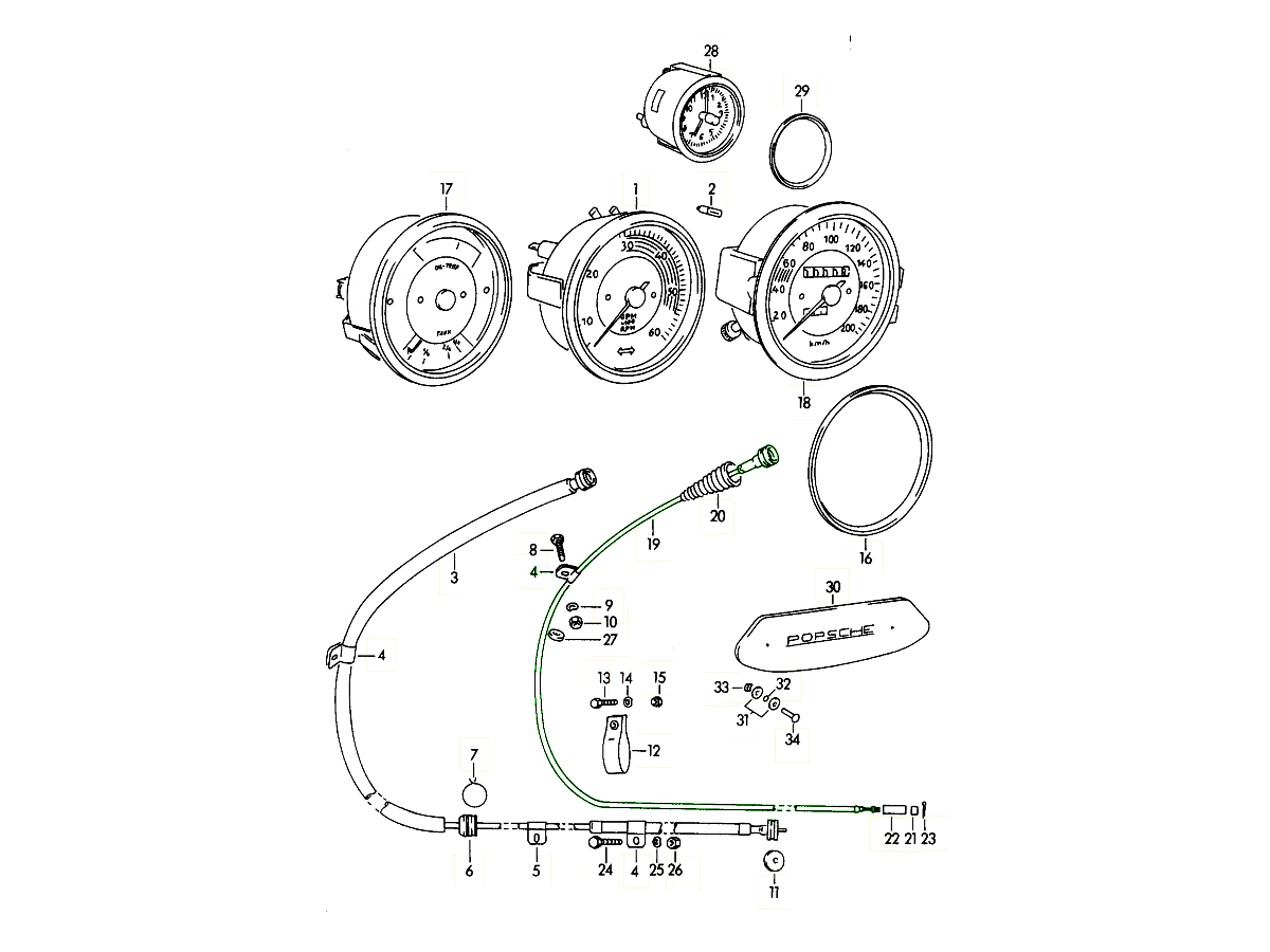 适用于保时捷356系列(包括356、356A、356B、356C)的原装保时捷速度表线缆。该线缆能够可靠地将变速箱输出的旋转运动传递至速度表驱动装置,从而确保速度表读数的准确性。