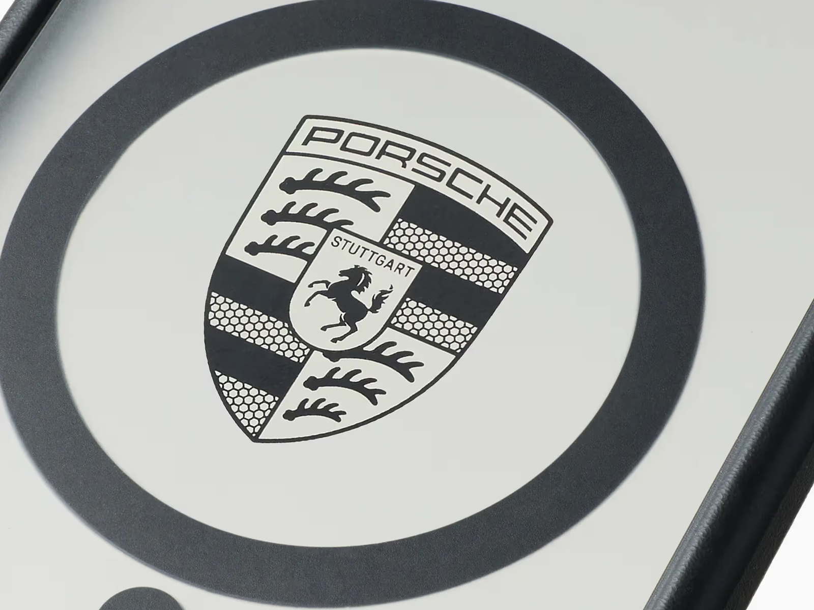 一大亮点:这款手机壳可以使用随附的保时捷车标贴纸进行个性化设计。