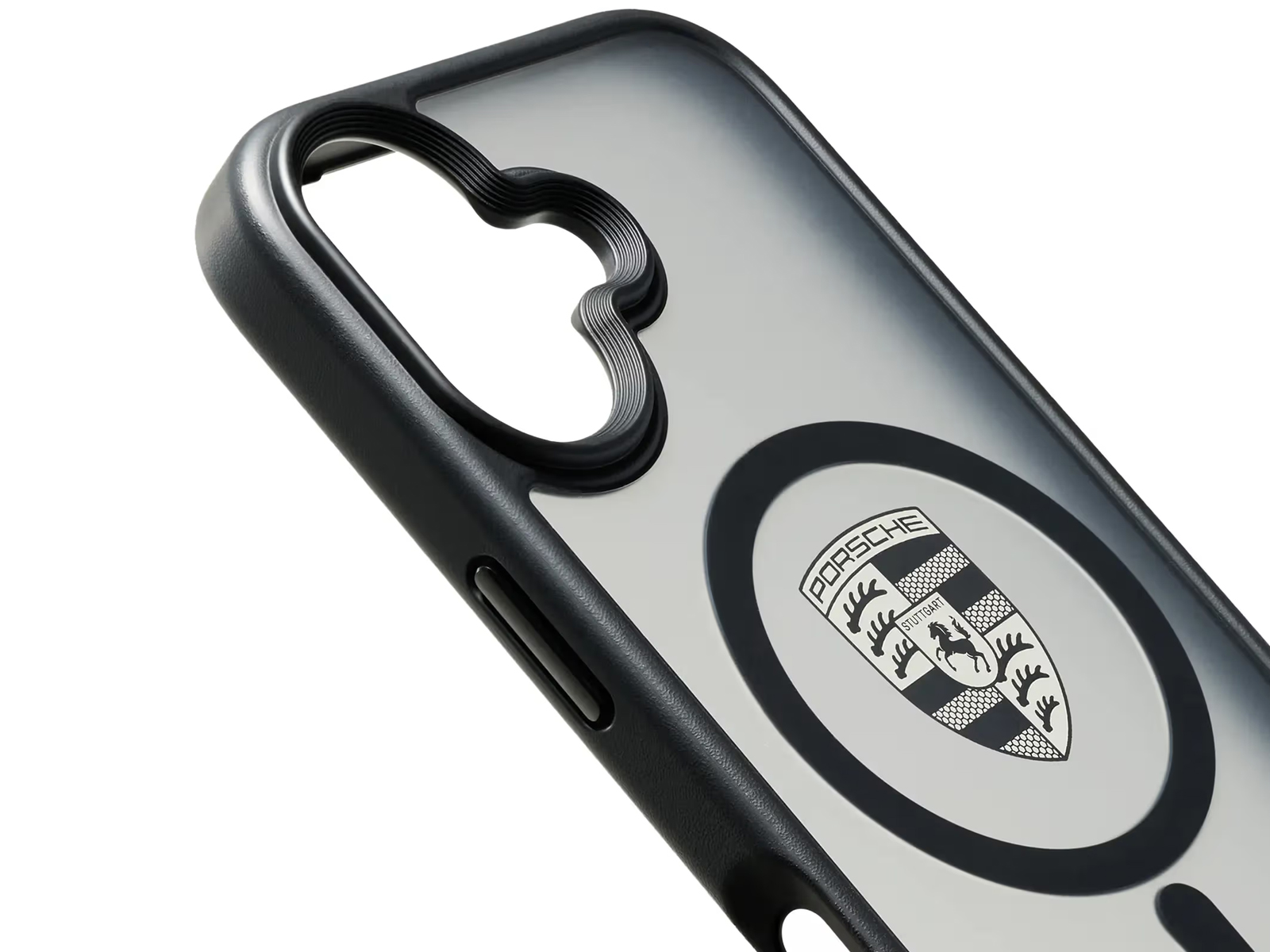 保时捷卓越性能,尽在掌握:这款适用于 iPhone® 17 的高级 iPhone 保护壳饰有标志性的保时捷盾徽。铝制摄像头边框不仅增添时尚气息,更提供额外保护。得益于 MagSafe 兼容性,随时随地享受无线充电。