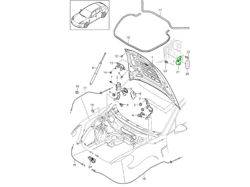 前盖释放拉索。使用这款原装保时捷前引擎盖释放拉索,确保可靠地打开引擎盖。这款拉索专为保时捷 996 和 986 Boxster 车型设计,连接车内释放杆和前引擎盖锁,提供顺畅可靠的操作。