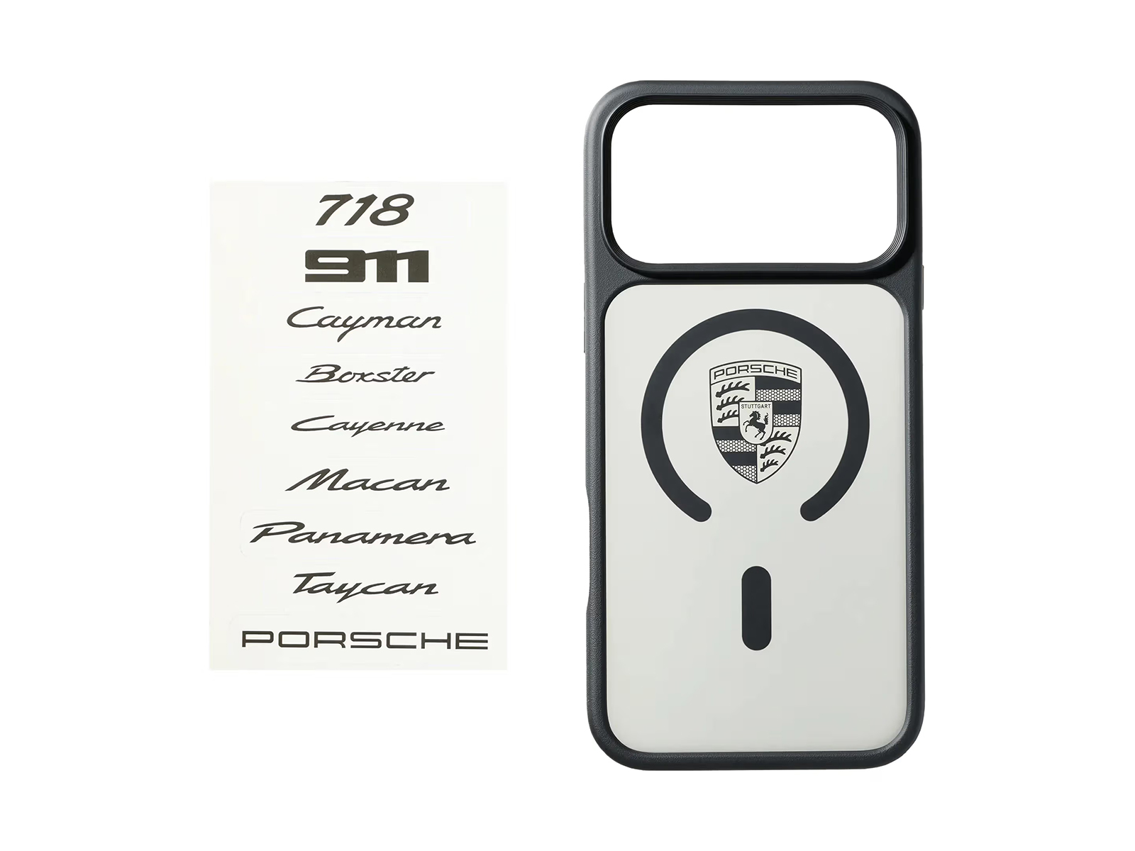 特别亮点:这款手机壳可以使用随附的保时捷汽车标志贴纸进行个性化设计。