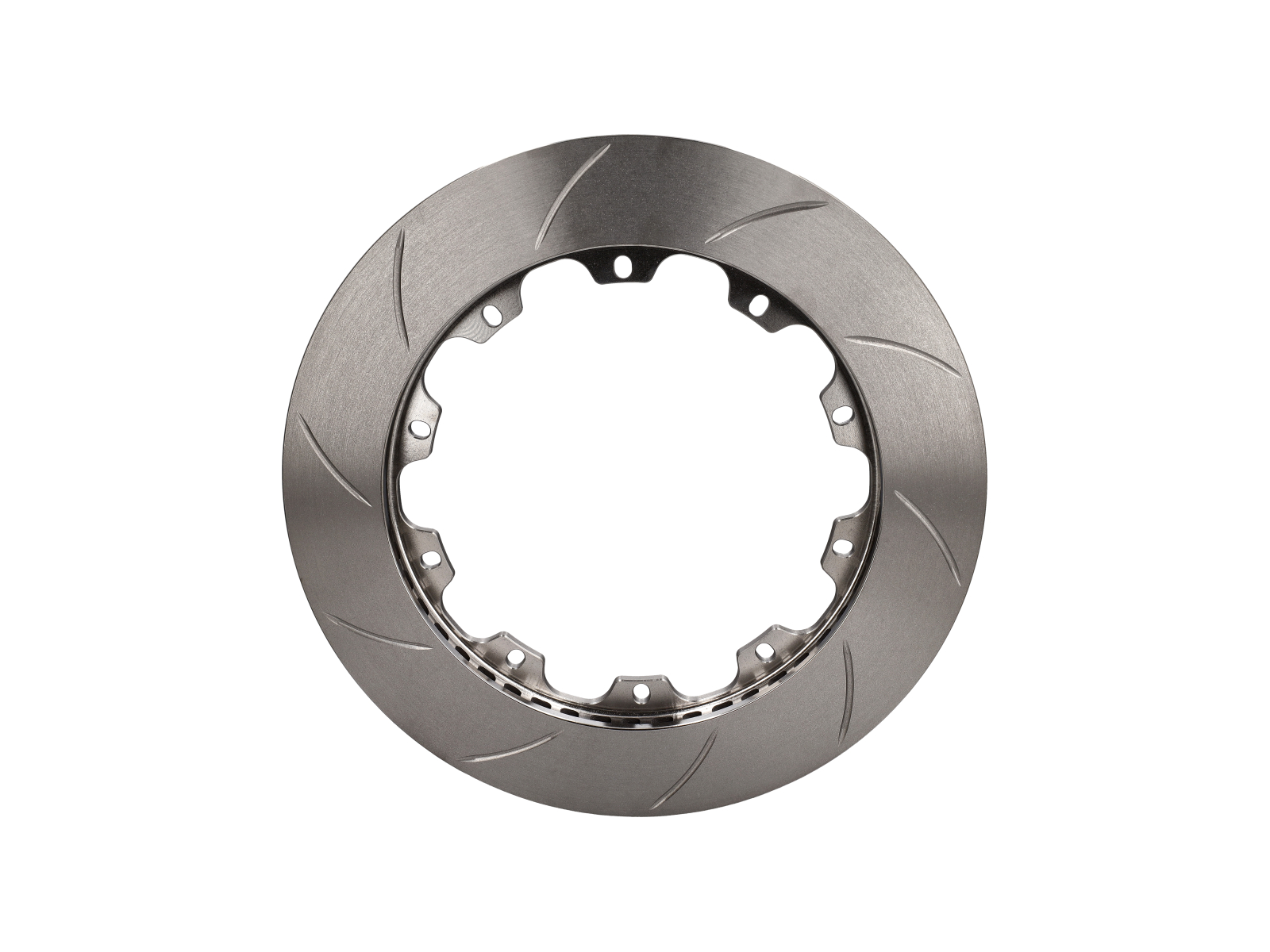 我们转子的中央帽部分由严格采购自美国的 6061-T6 航空规格铝制成。盘片由我们自己的专有铸铁制成,在美国浇铸,并从头到尾在 Girodisc 内部加工。转子采用弯曲叶片设计,在赛车中开发,用作离心泵,迫使冷却空气通过盘片。