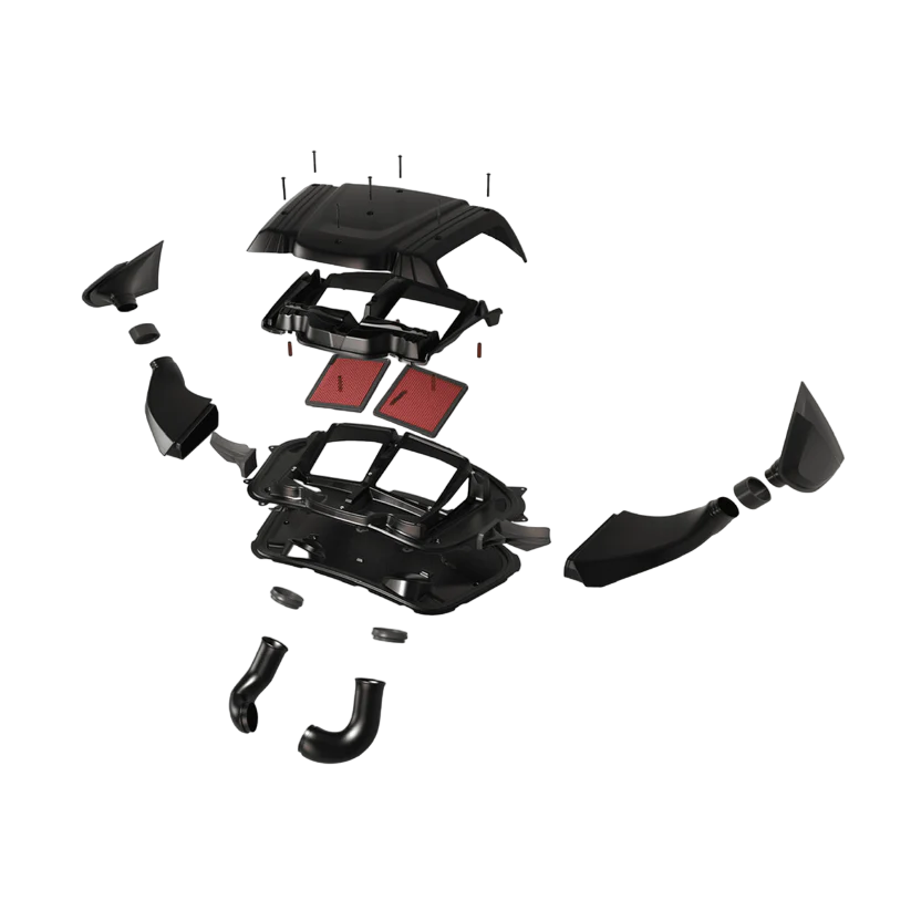 保时捷 981 和 982 (718) 六缸 Cayman 的进气系统采用预浸碳纤维和灌注碳纤维精心打造,均在高压釜中固化。这是目前市面上唯一适用于这些保时捷车型的完整进气系统。