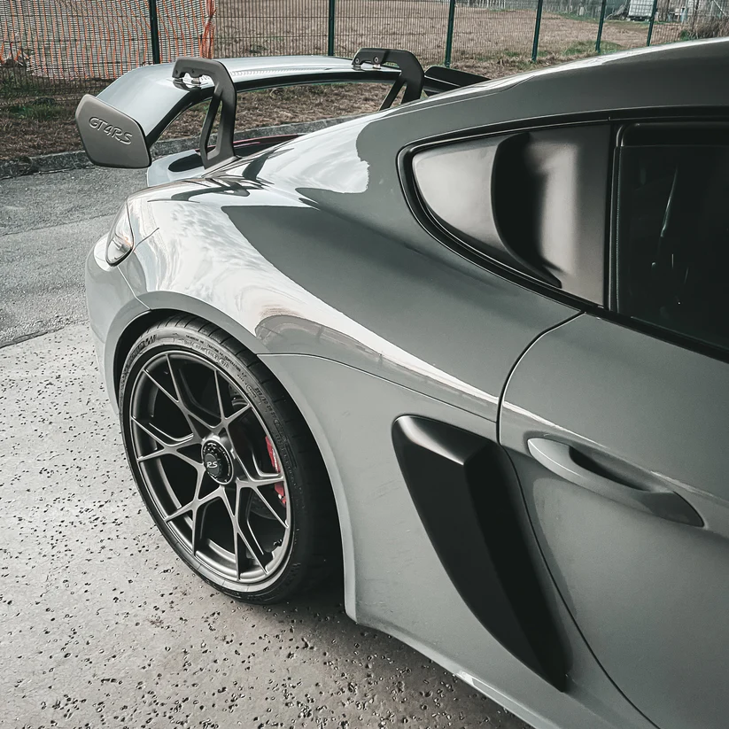 碳纤维进气口套件采用灌注工艺制作并在高压釜中固化,专为所有未配备 Weissach 套件的保时捷 Cayman GT4 RS 车型设计。