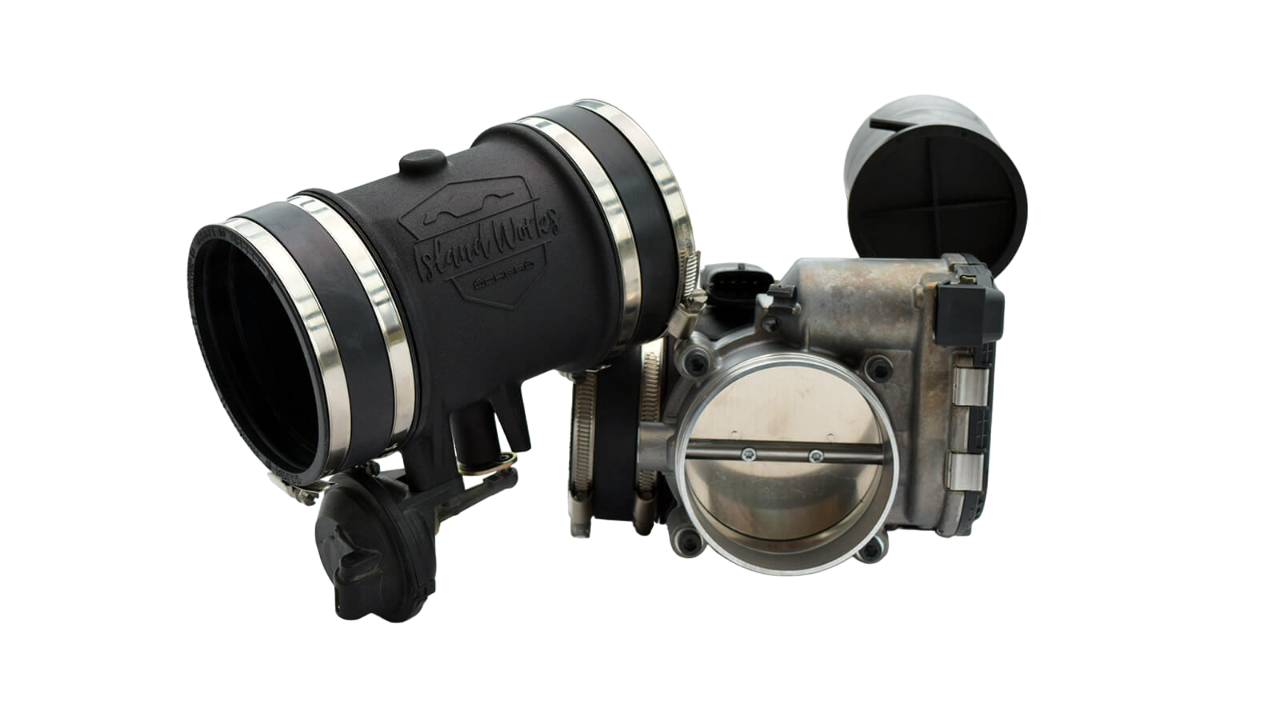 改装套件为基于保时捷 964 的进气系统,成为基于 DBW(线控驱动)进气系统的 74 毫米原装博世节气门体(有时称为 76 毫米),全部采用 CNC 铣削铝坯制成。