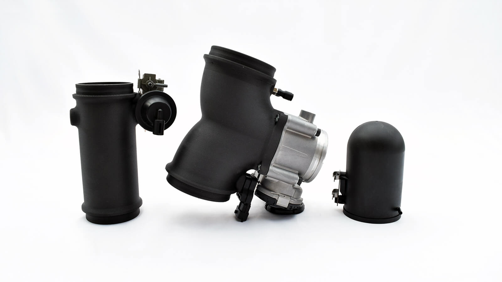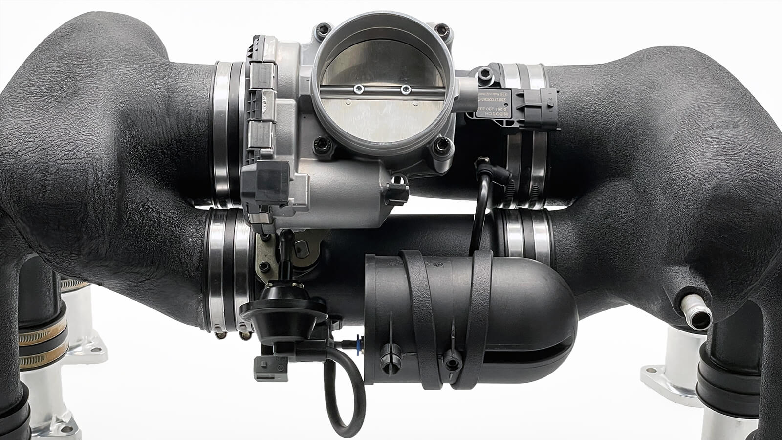 进气口改装套件由节气门体流道和共振管组成。这是将保时捷 996 GT3 MK1 或 MK2 集气室改装为适合保时捷 964 发动机所需的部件。该套件坚固耐用,由改良的 PA12 材料制成,与原装保时捷零件相比,感觉陈旧而脆弱。