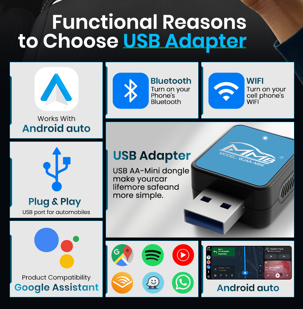 - USB AA 迷你加密狗:让您的驾驶更安全、更便捷,简化您的驾车体验。